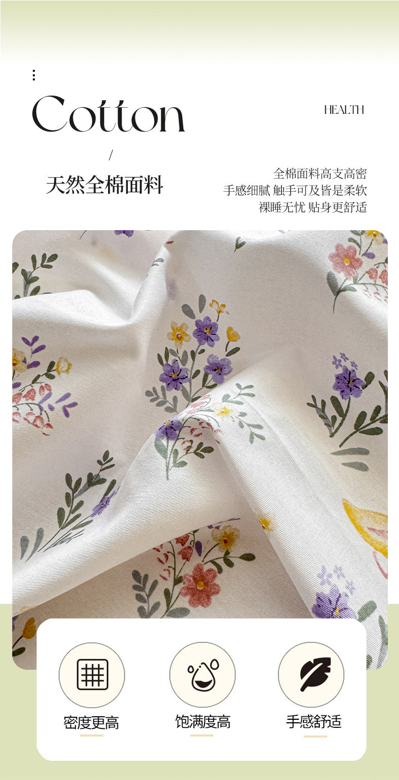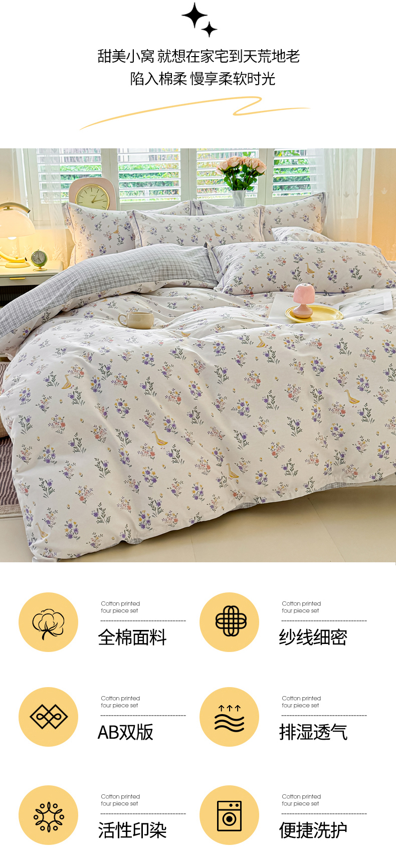 商品名称:洺兰家居 2025年新款全棉A类全喷气印花小清新床单床裙款四件套学生三件套 阑珊