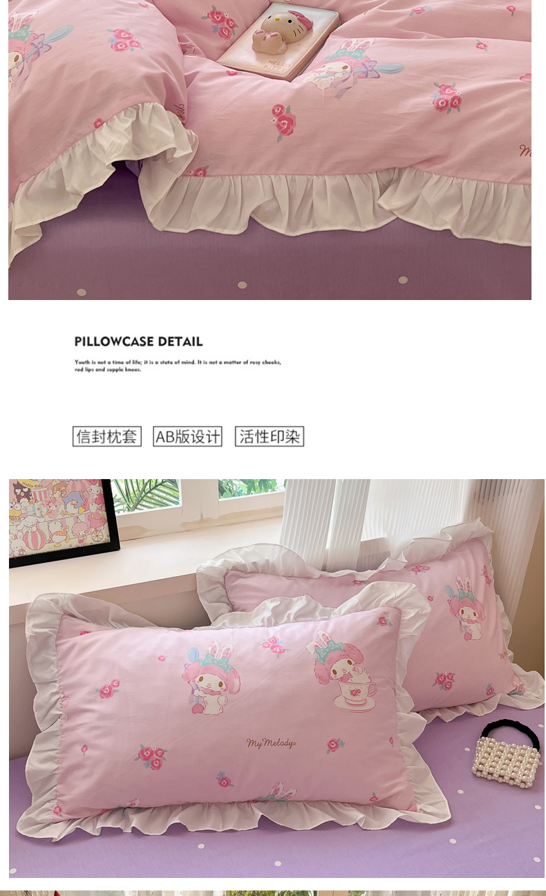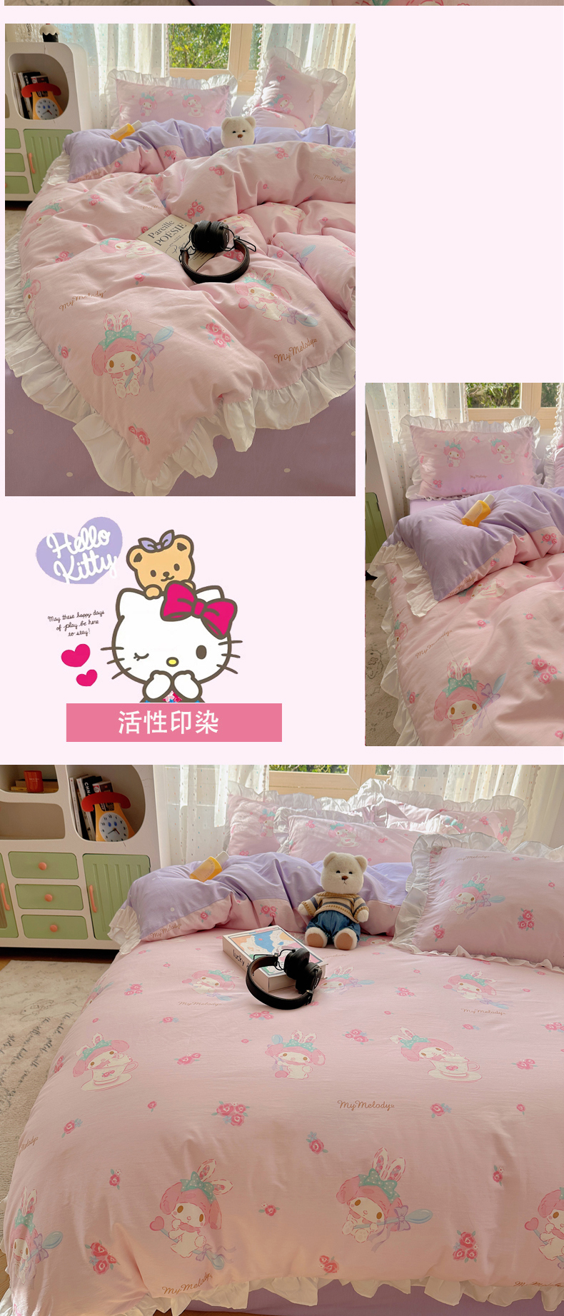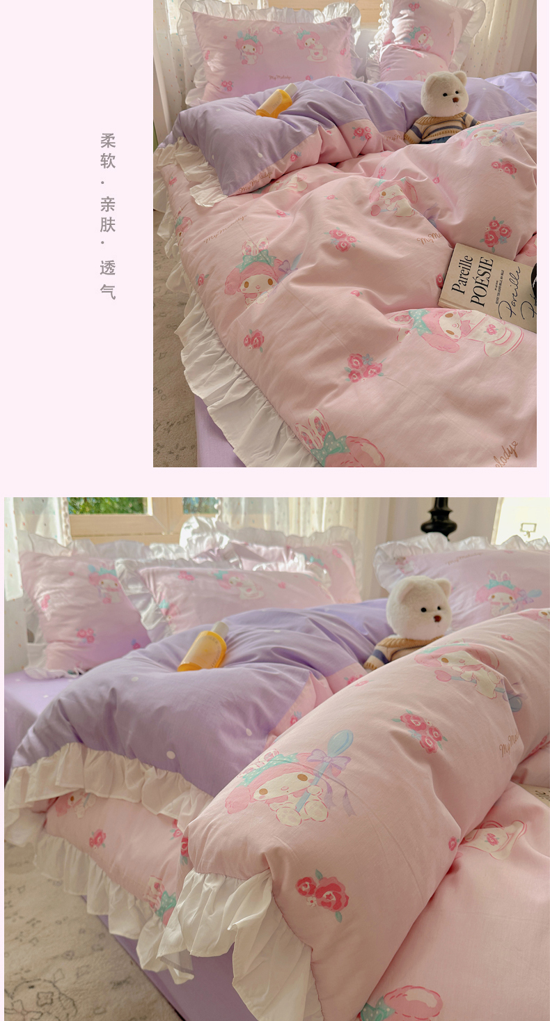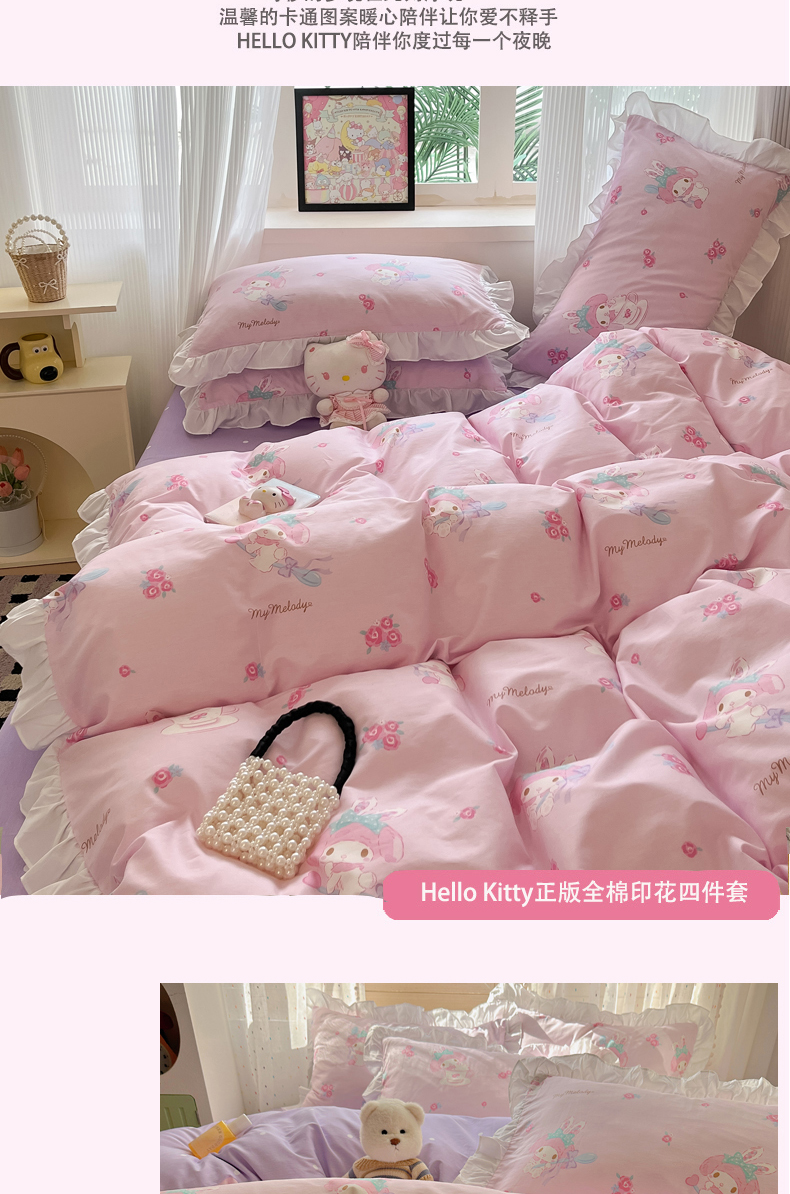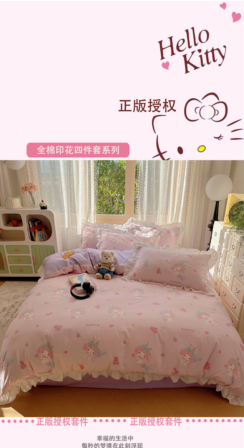商品名称:三朵家纺 2025新款全棉花边款三丽欧系列四件套 魔法美乐蒂