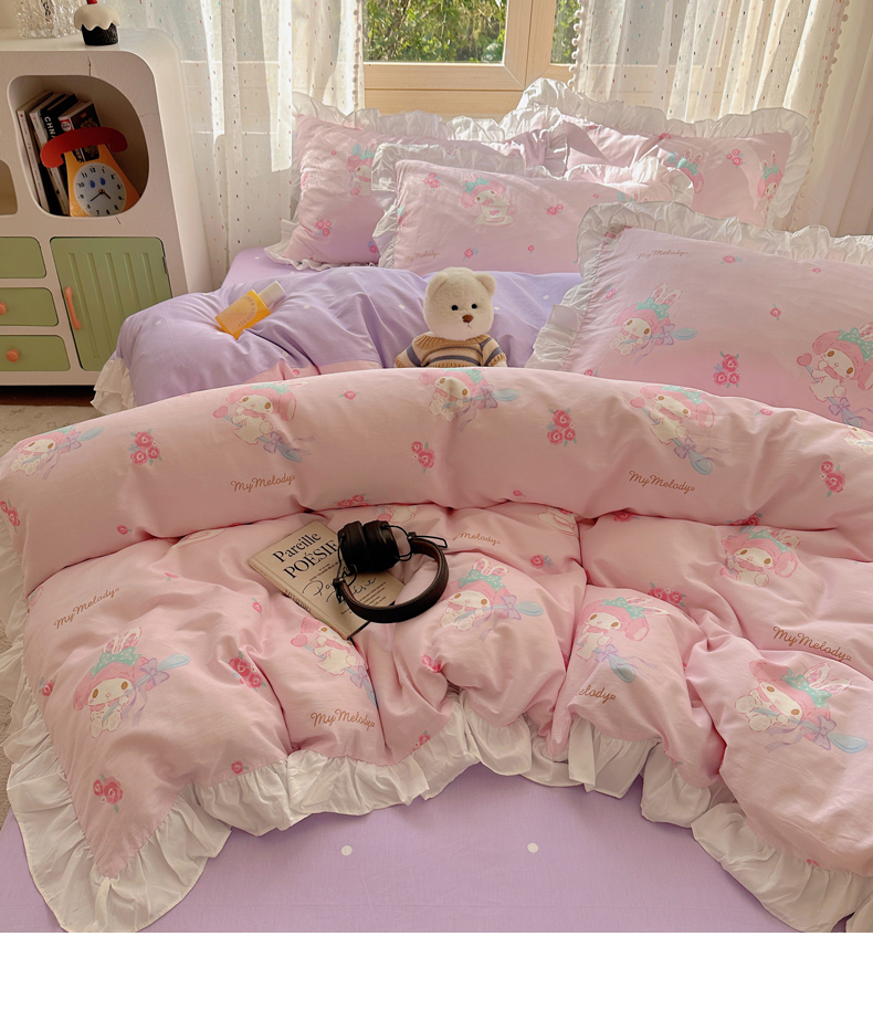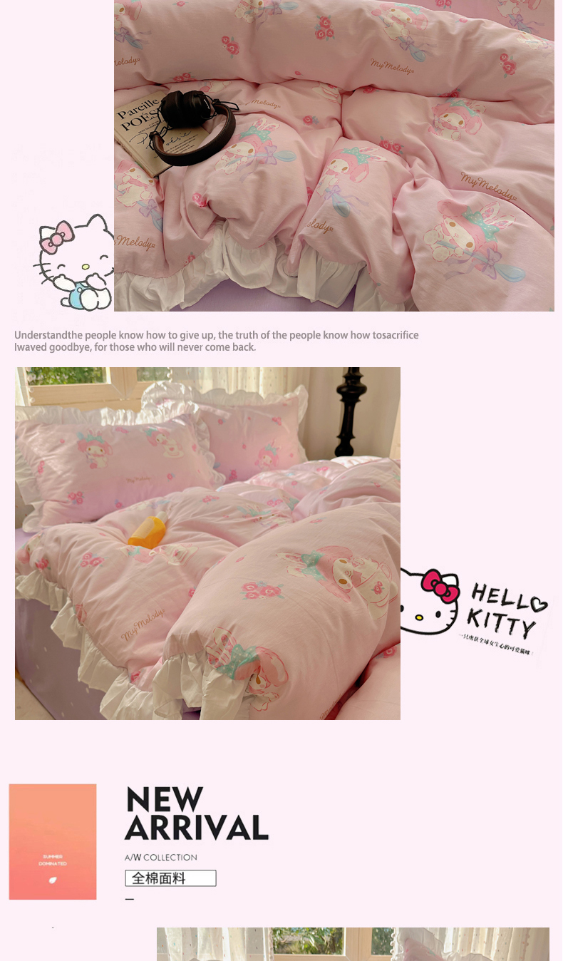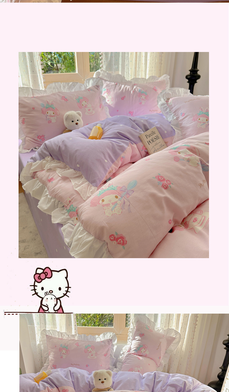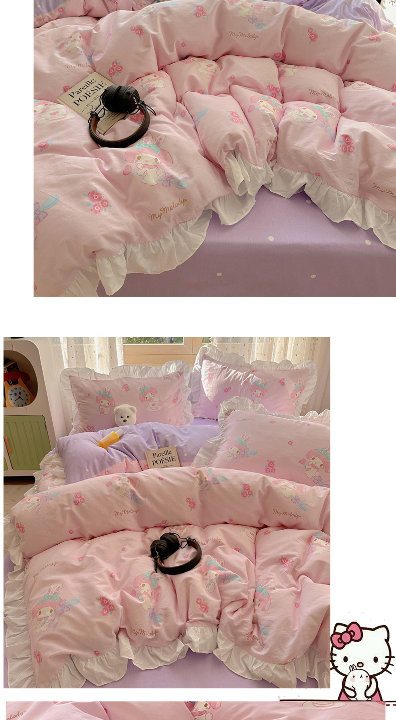 三朵家纺 2025新款全棉花边款三丽欧系列四件套 魔法美乐蒂