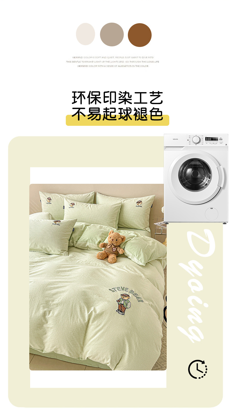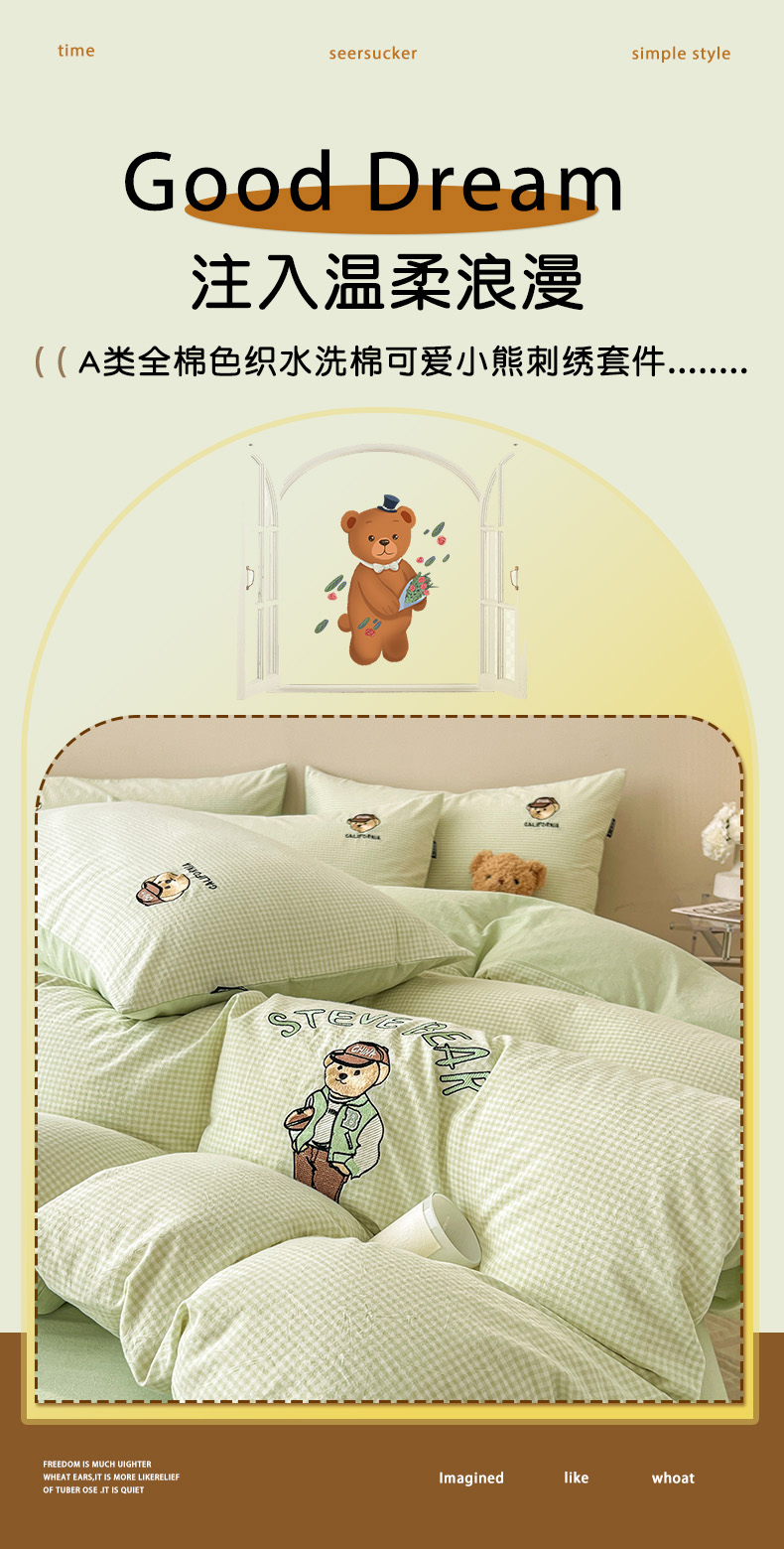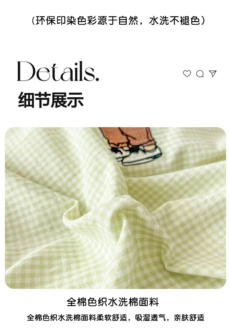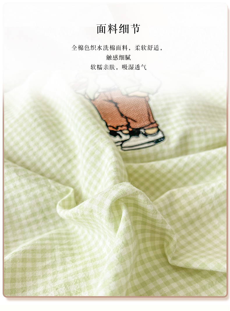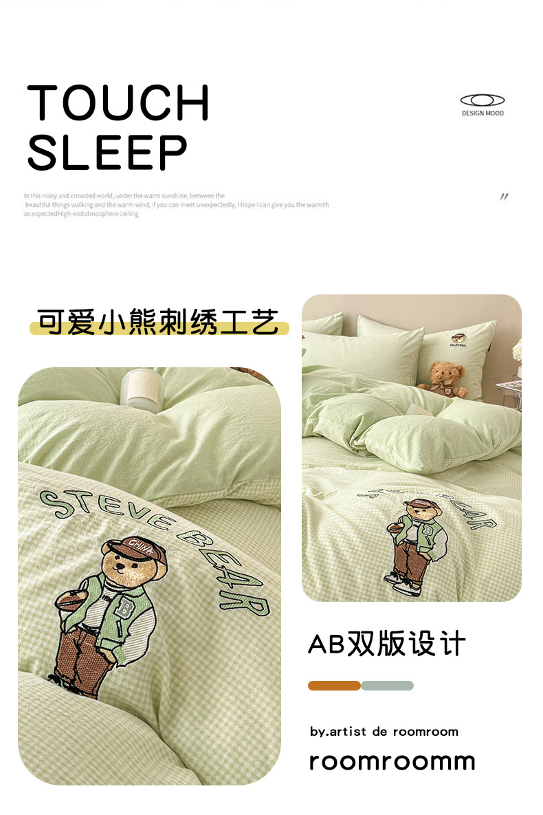 当前位置: 91家纺网 > 商品网购 > 床品套件 > 四件套 > 水洗棉四件套 > 2025新款A类全棉色织水洗棉可爱小熊刺绣四件套 小熊先生-草绿