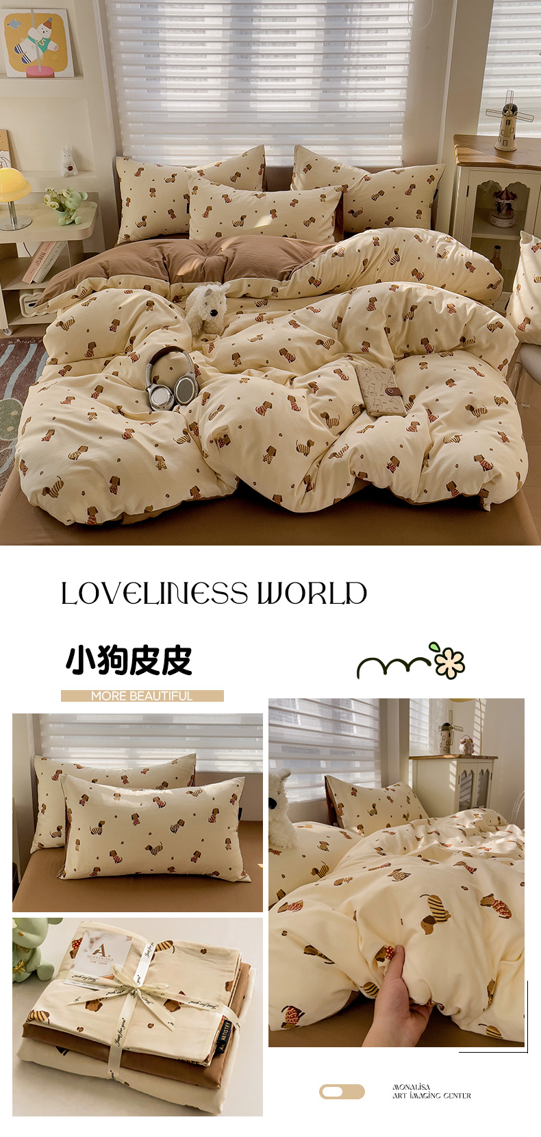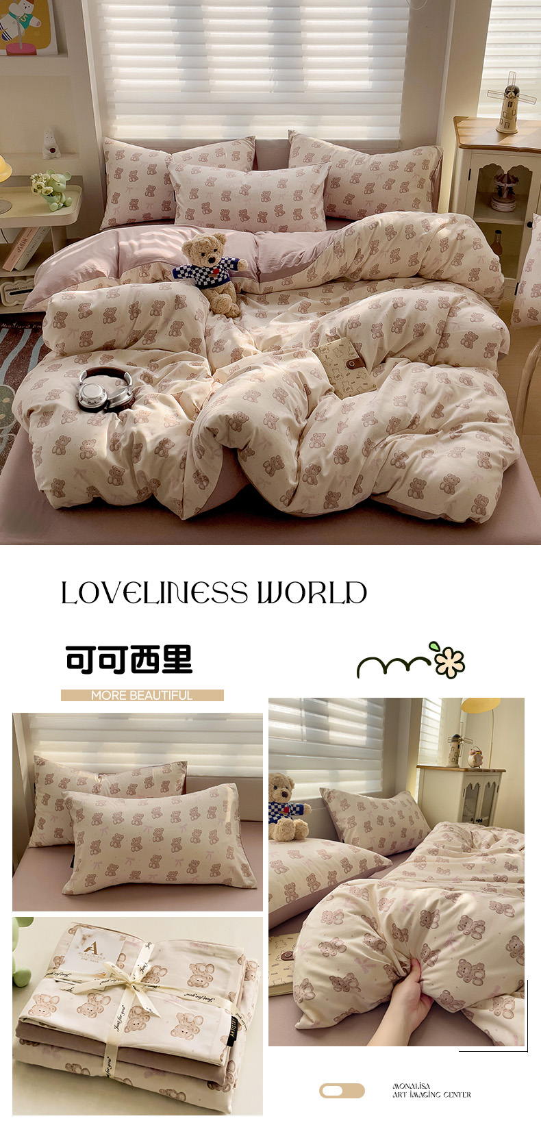 (总)娜娜 2026新款A类云朵锦花边四件套,动物世界-雾蓝,满天星-豆沙,满天星-浅紫,小雏菊-浅绿,小雏菊-玉色,樱花粉