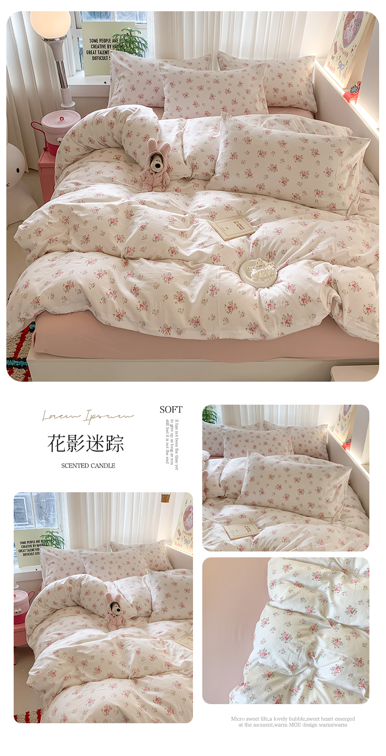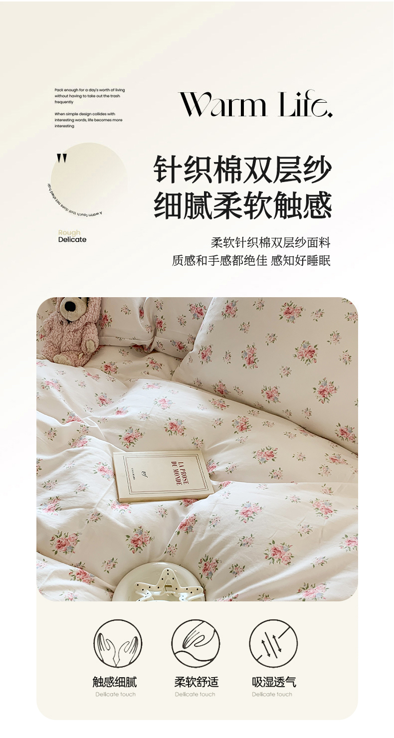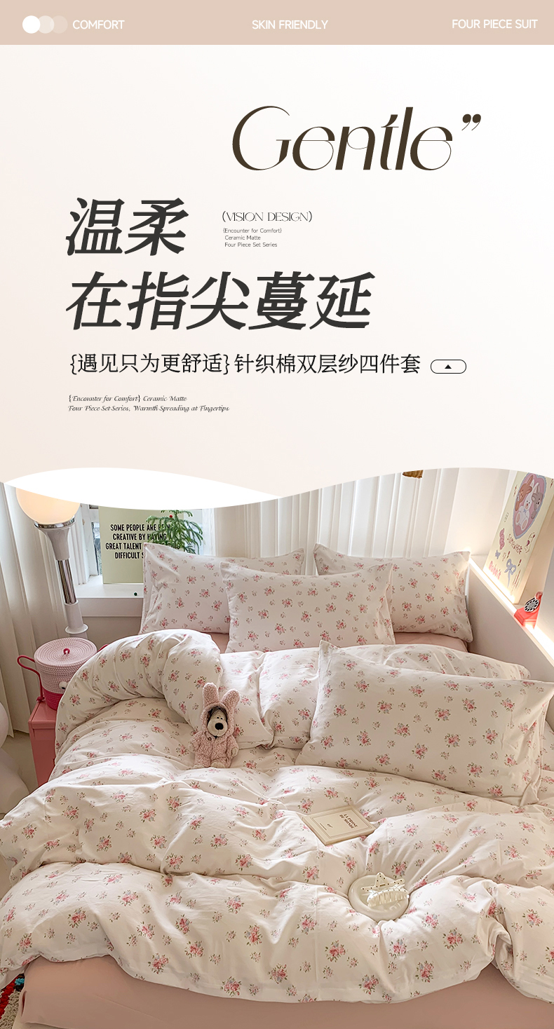 商品名称:吾欢心 2025新款针织棉双层纱四件套 花影迷踪