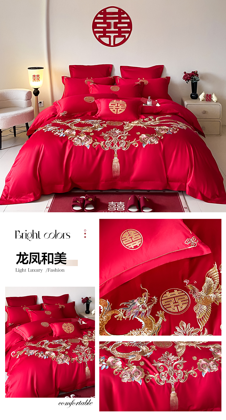 商品名称:欧乐蒂 2025新款全棉刺绣婚庆四件套 龙凤和美