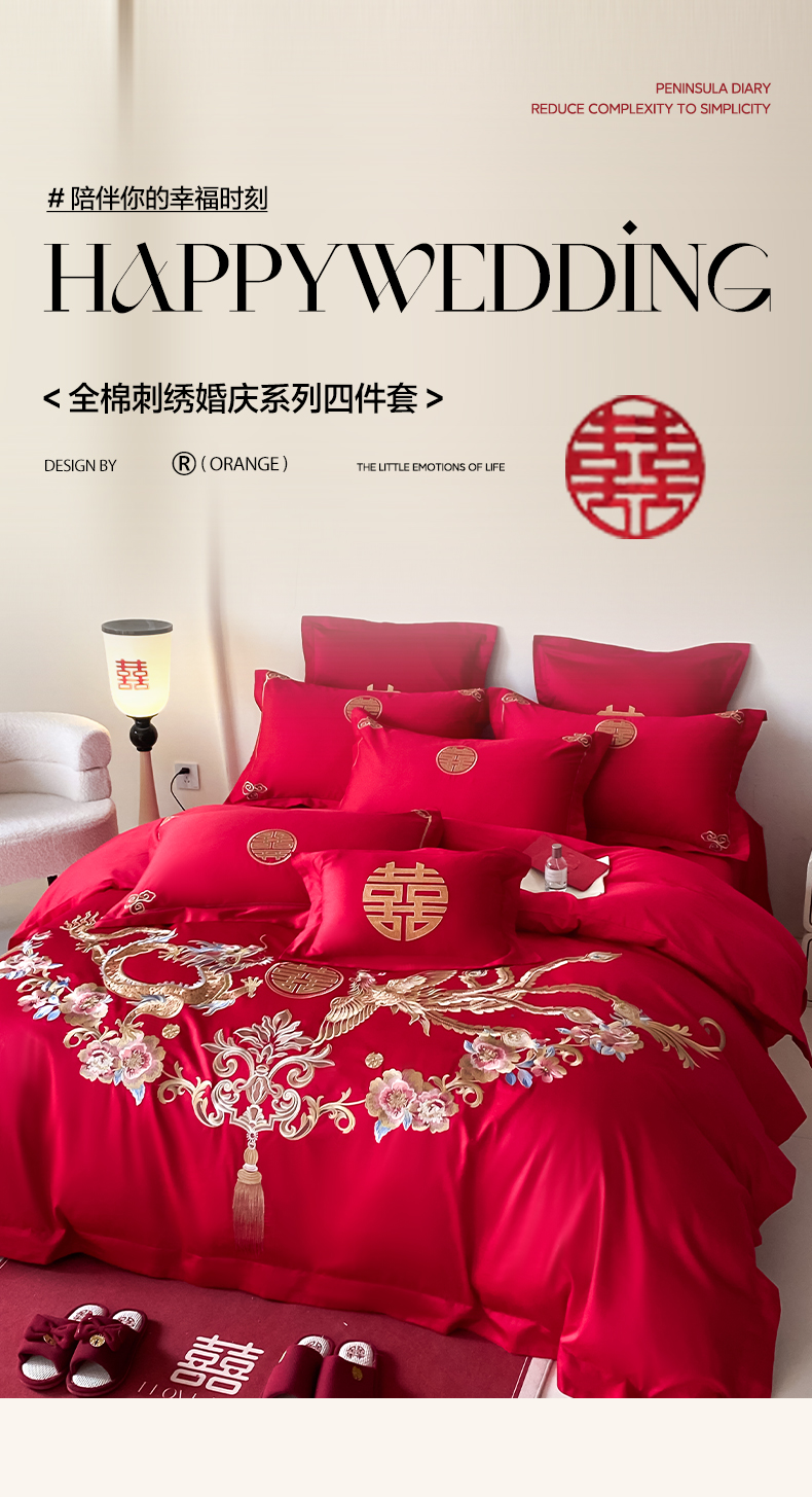 (总)欧乐蒂 2025新款全棉刺绣婚庆四件套,佳偶天成,龙凤和美,龙姿凤彩,玫瑰恋人,倾城之恋,双囍临门,甜蜜爱情,囍结良缘