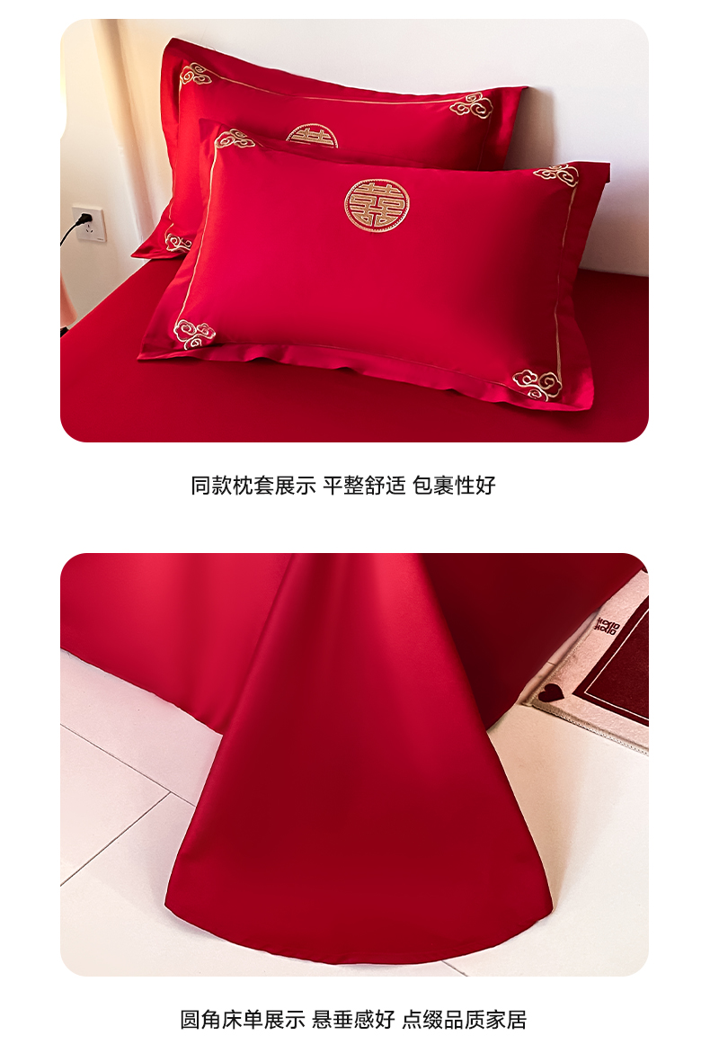 (总)欧乐蒂 2025新款亲肤棉刺绣花边婚庆四件套-浪漫花季,浪漫花季-红,浪漫花季-金