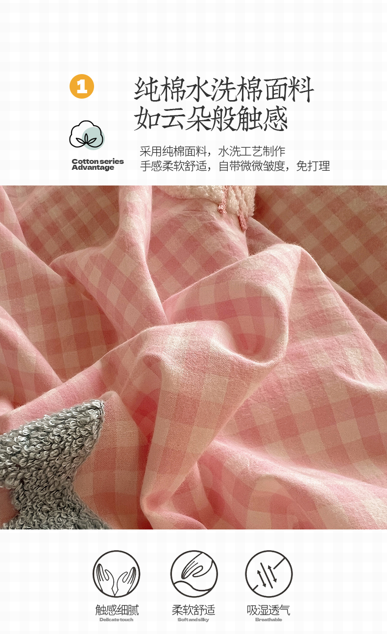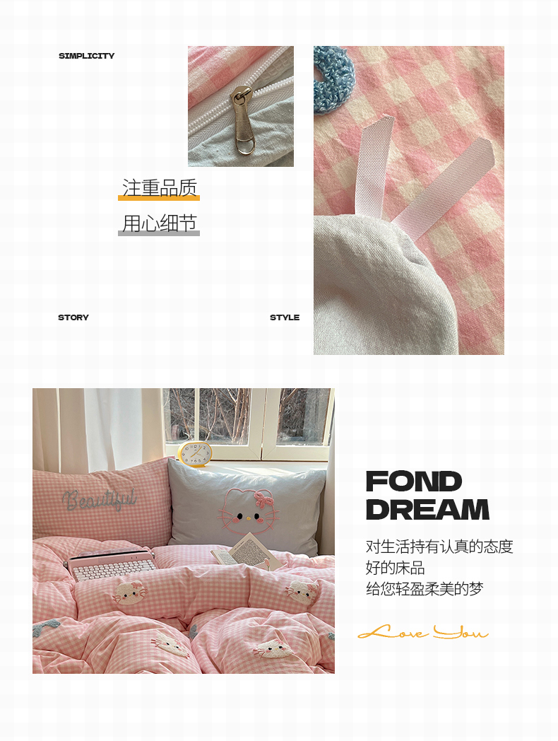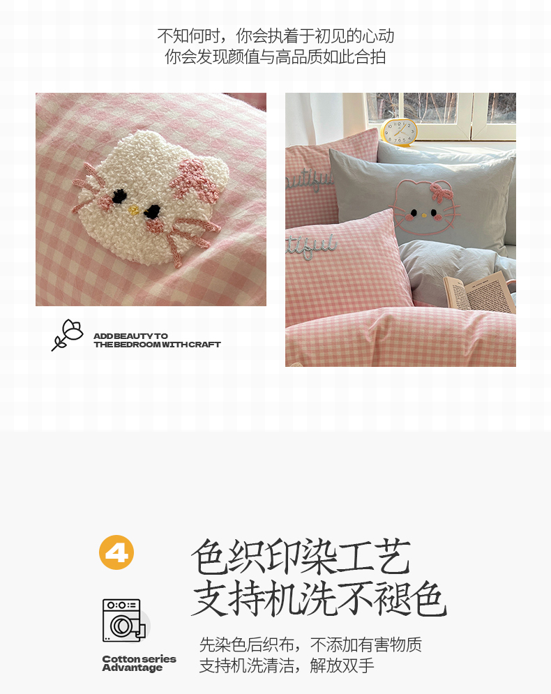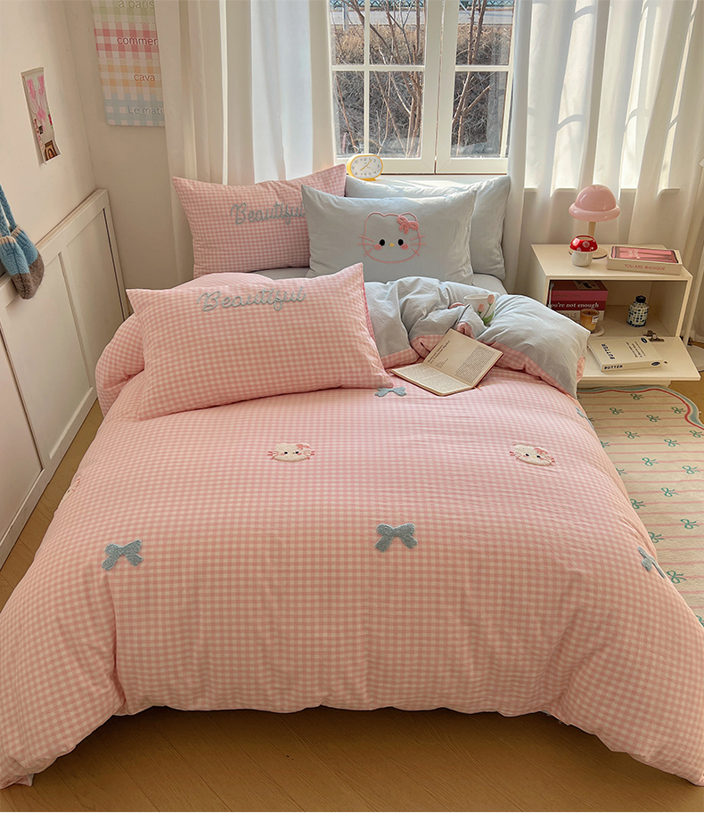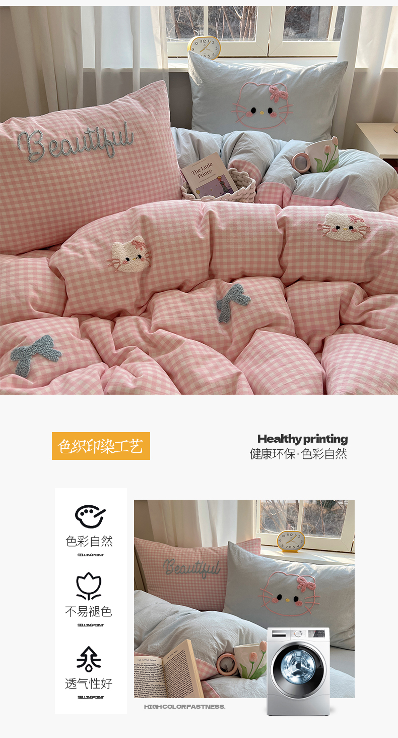 当前位置: 91家纺网 > 商品网购 > 床品套件 > 四件套 > 水洗棉四件套 > 桃子家居 2025新款A类ins纯棉色织水洗棉毛巾绣奶油少女猫咪兔兔混搭系列四件套 色织水洗棉-猫咪粉蓝