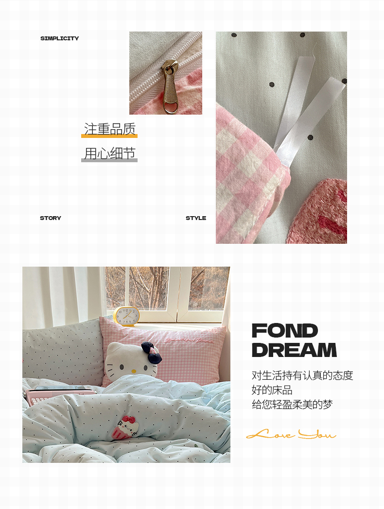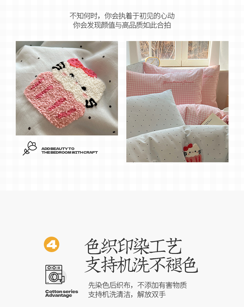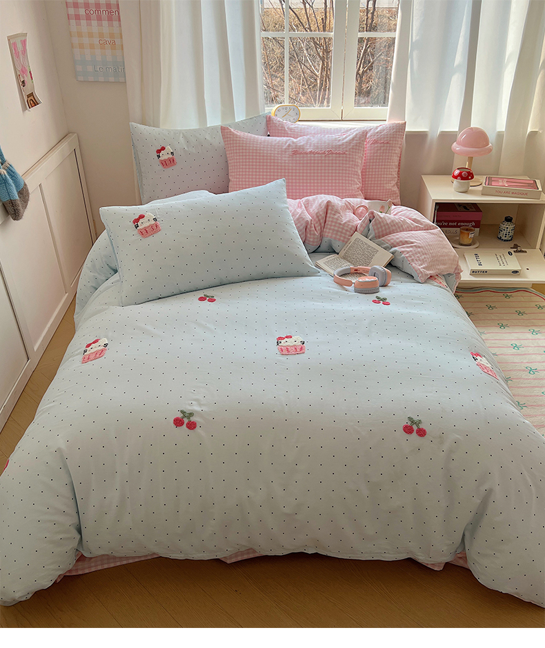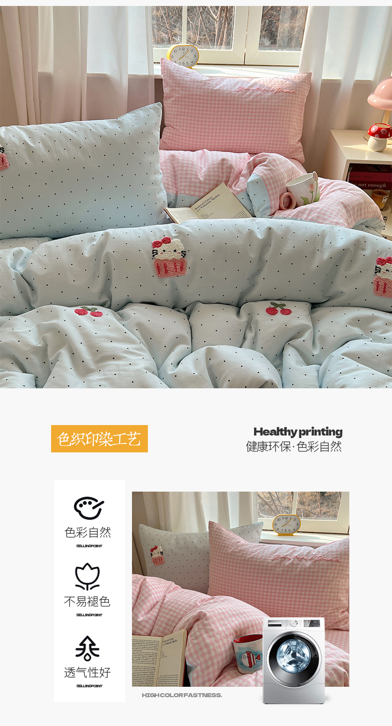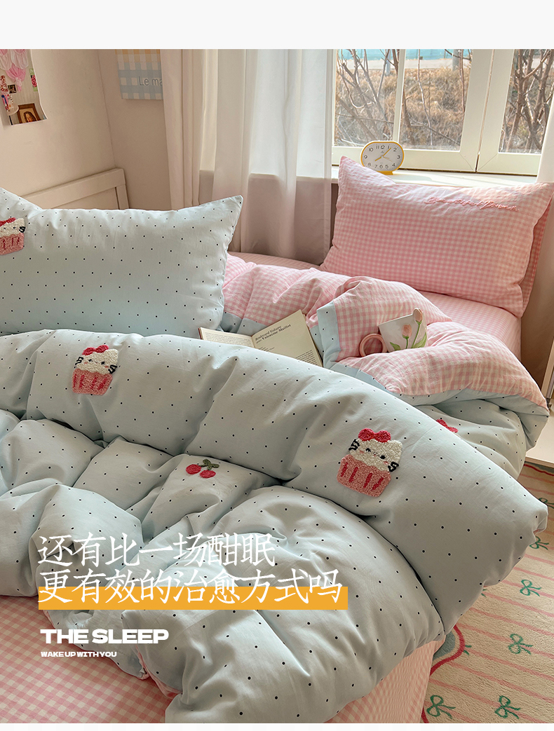 当前位置: 91家纺网 > 商品网购 > 床品套件 > 四件套 > 水洗棉四件套 > 桃子家居 2025新款A类ins纯棉色织水洗棉毛巾绣奶油少女猫咪兔兔混搭系列四件套 色织水洗棉-樱桃猫咪蓝粉