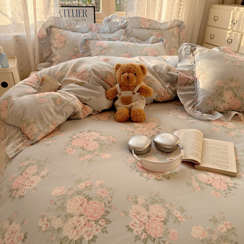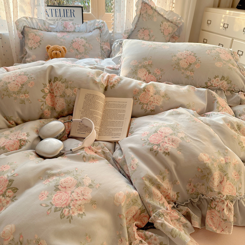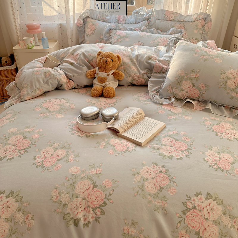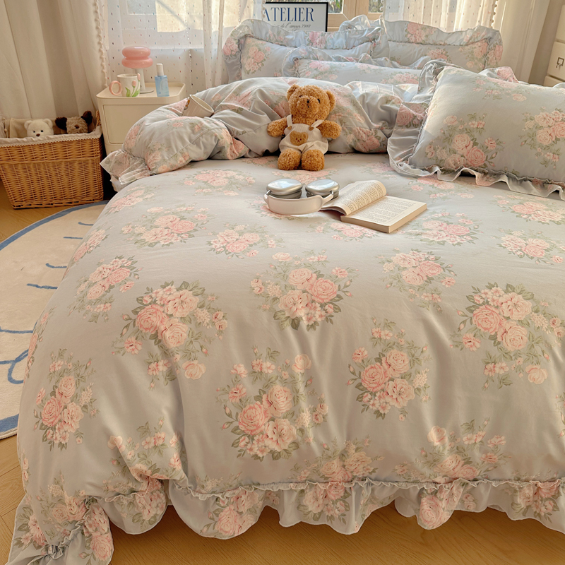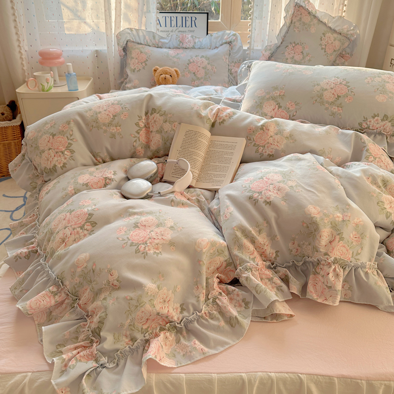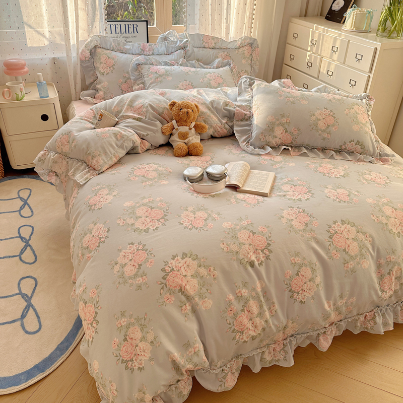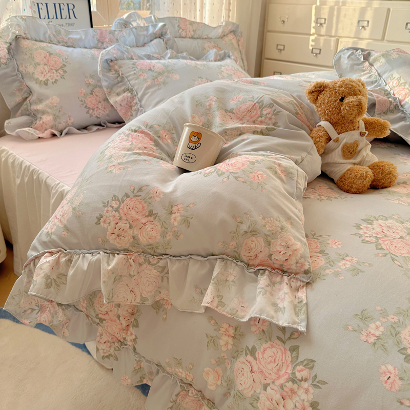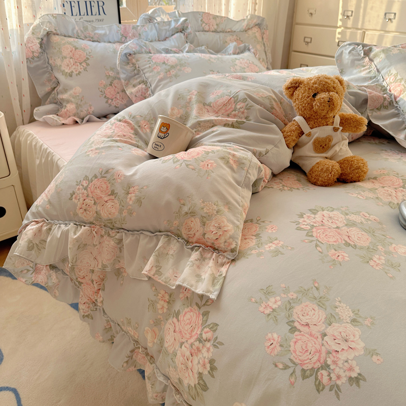 当前位置: 91家纺网 > 商品网购 > 床品套件 > 四件套 > 其它四件套 > 盼季家纺 2025新款公主风花边小清新水洗棉床上四件套床单被套床裙三件套-风格二 花丛