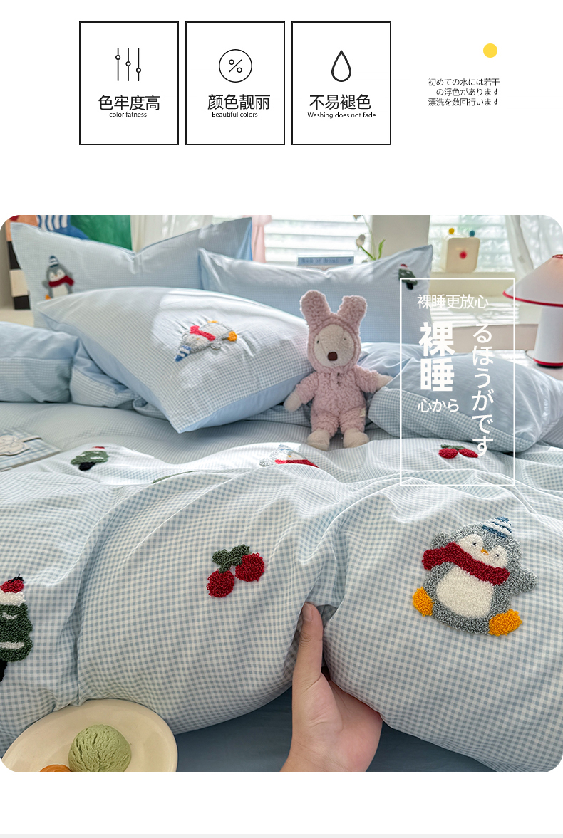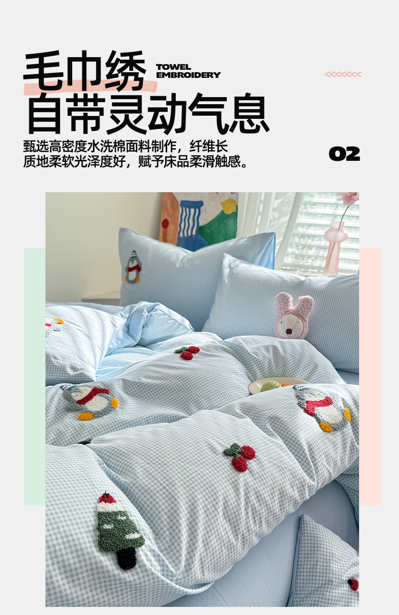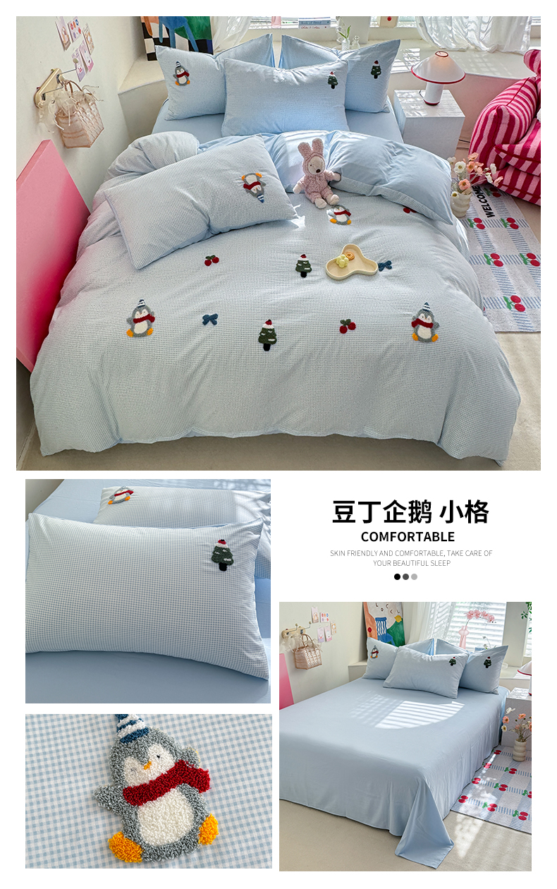 当前位置: 91家纺网 > 商品网购 > 床品套件 > 四件套 > 水洗棉四件套 > 多品家纺 2025新款超柔水洗棉毛巾绣四件套-豆丁企鹅 豆丁企鹅-小格