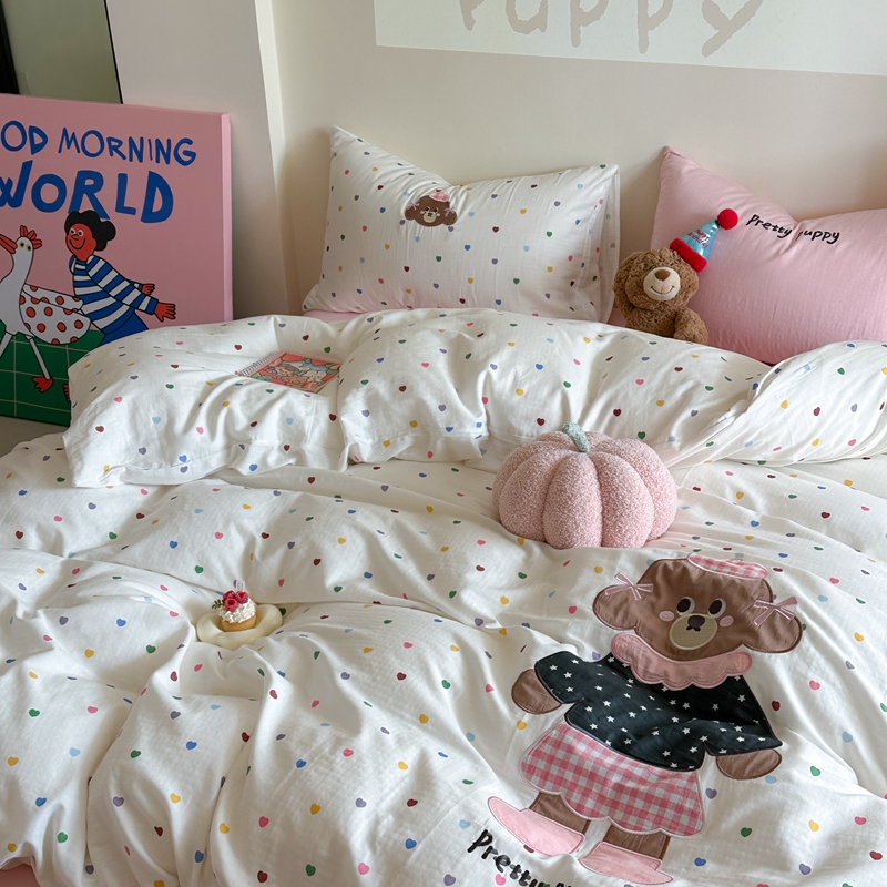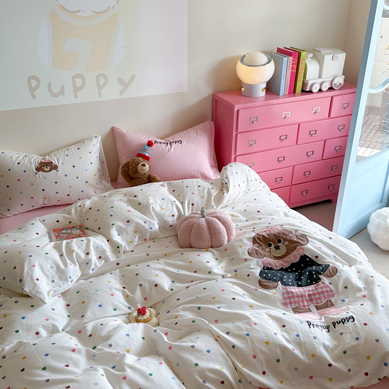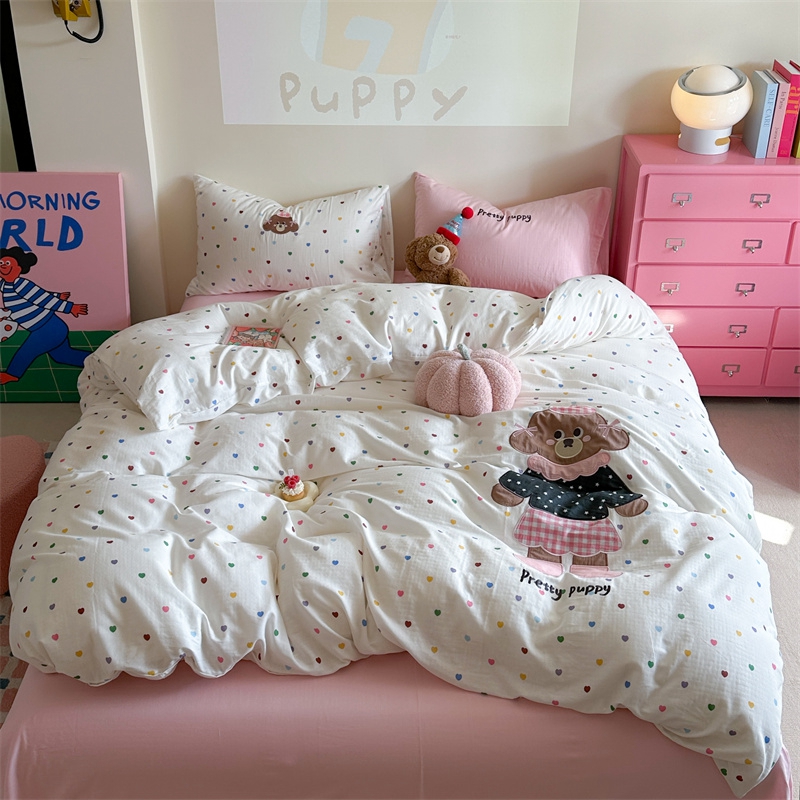 (总)柚子YOUTH 2025新款全棉纯棉工艺款13070贴布绣四件套,爱心小象,毛绒小狗,蘑菇女孩,星星法师