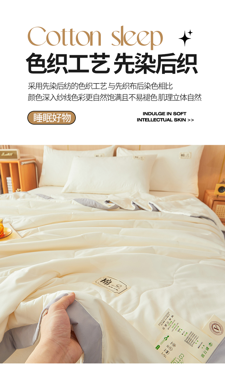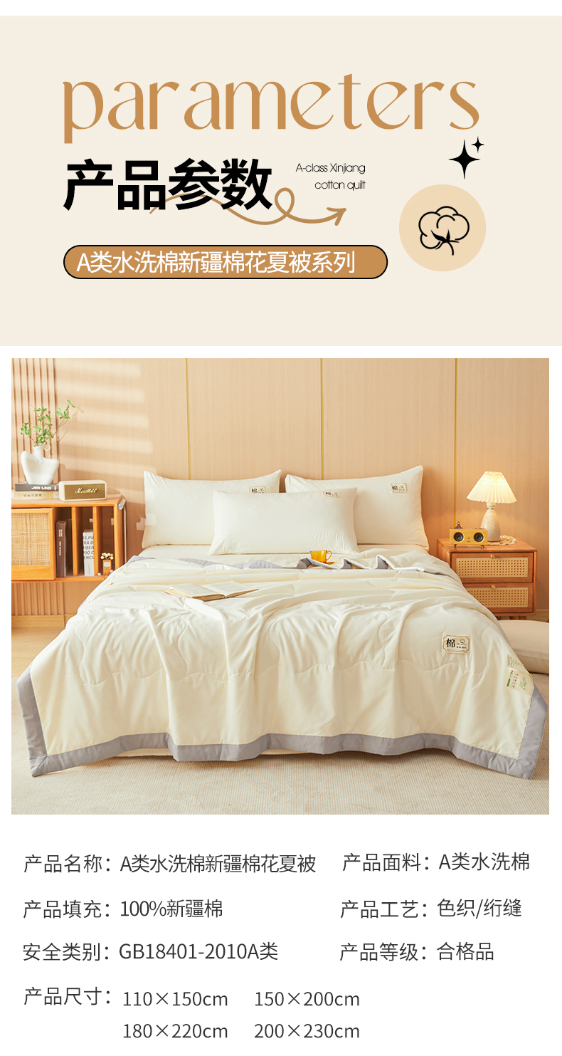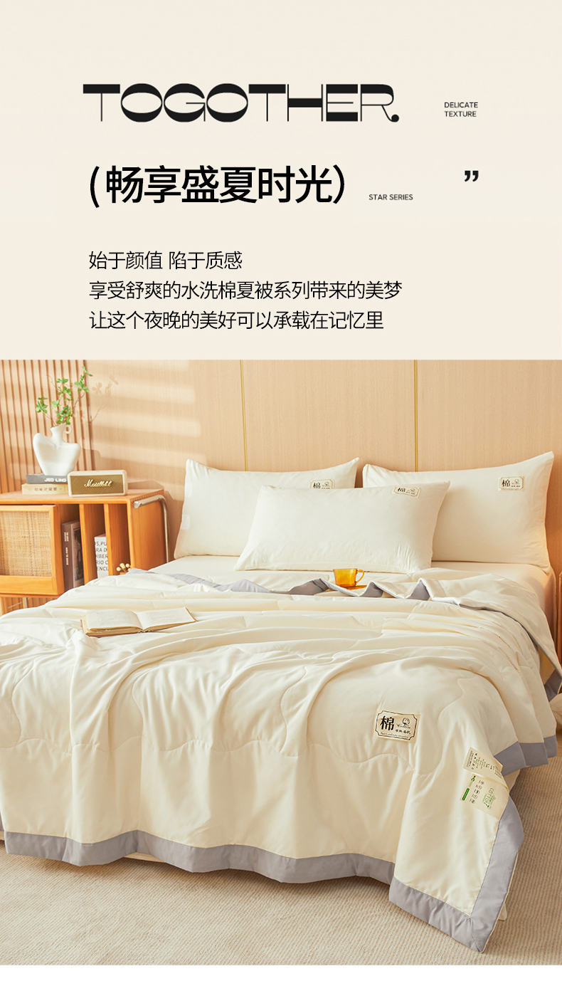 • 91家纺网 家纺一手货源 找家纺 招财星家纺 2025新款无印风新疆棉夏被夏凉被空调被可机洗直播可过质检 云朵白