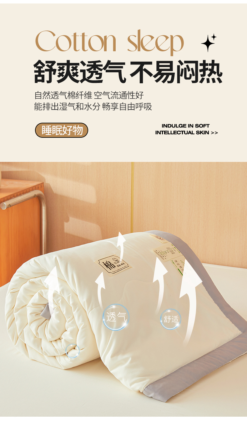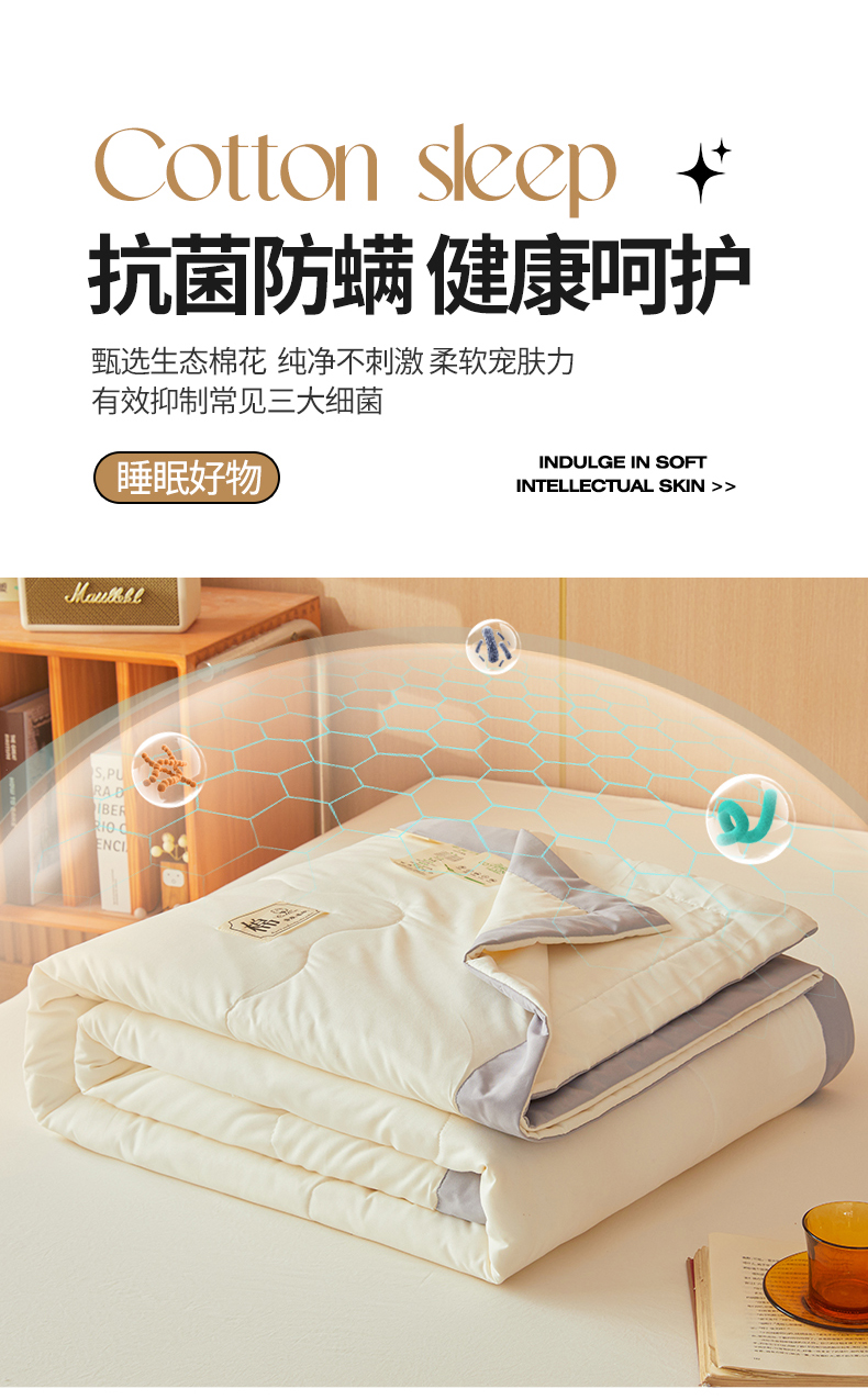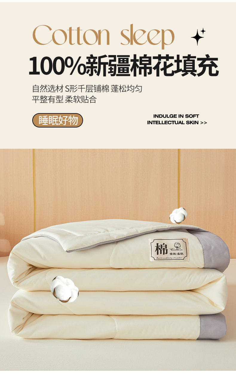 • 91家纺网 家纺一手货源 找家纺 招财星家纺 2025新款无印风新疆棉夏被夏凉被空调被可机洗直播可过质检 云朵白