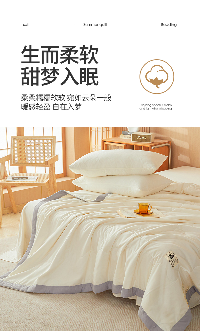 招财星家纺 2025新款无印风新疆棉夏被夏凉被空调被可机洗直播可过质检 云朵白