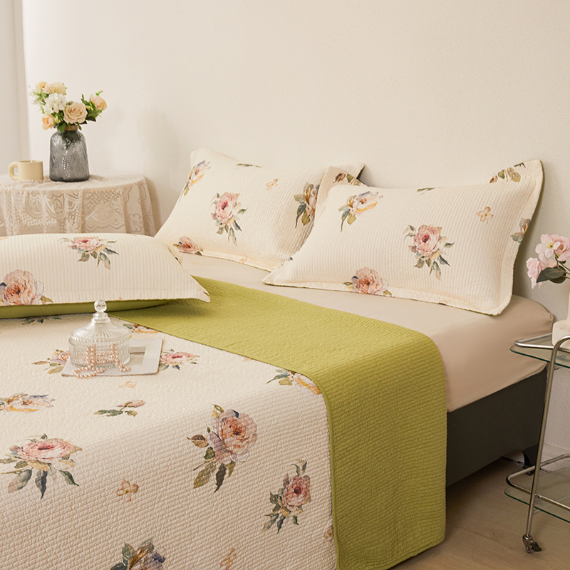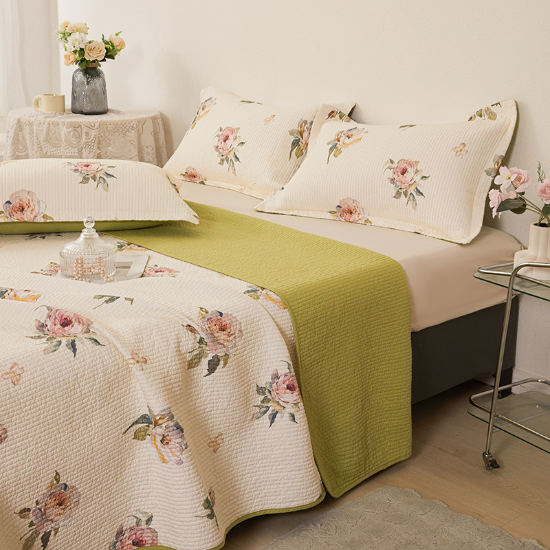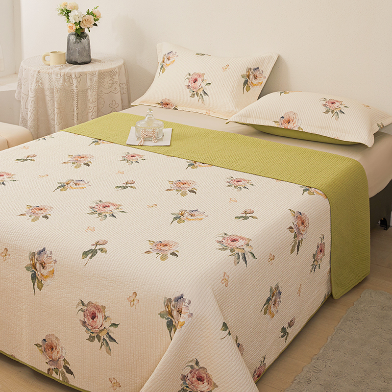 (总)莎果家纺 2025新款双面全棉数码印花大尺寸2.3*2.5米床盖三件套,碧山春晨,春日幽香,东方诗意,浮生若梦,静若幽兰,水墨年华