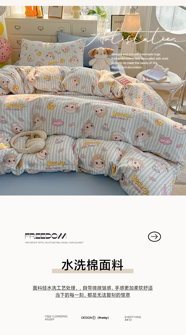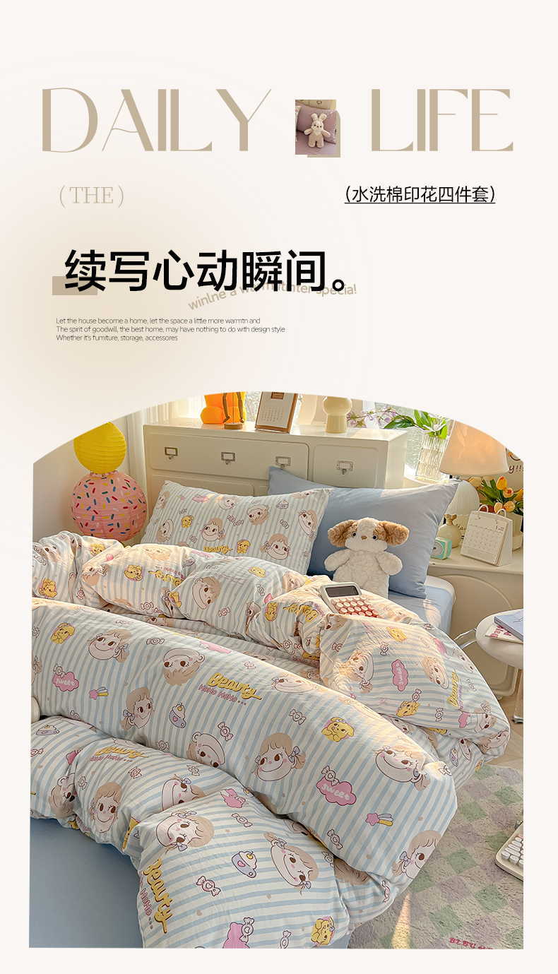 当前位置: 91家纺网 > 商品网购 > 床品套件 > 四件套 > 水洗棉四件套 > 韩巢家纺 2025新款超柔水洗棉印花被套床单床上用品四件套 糖小佳