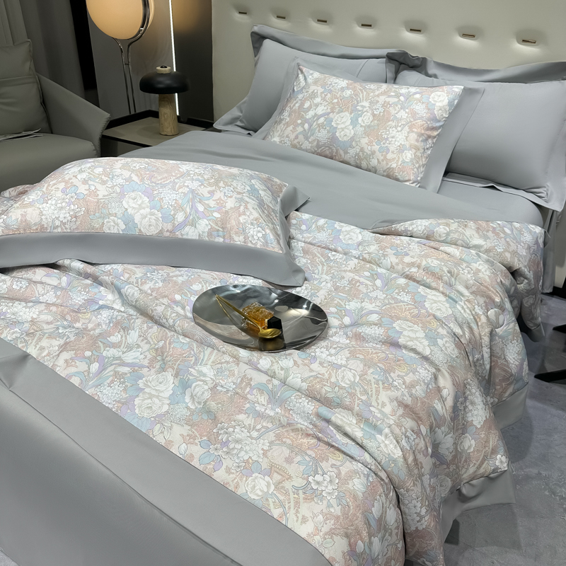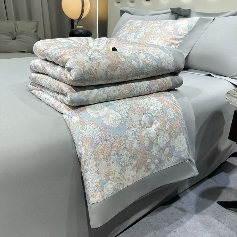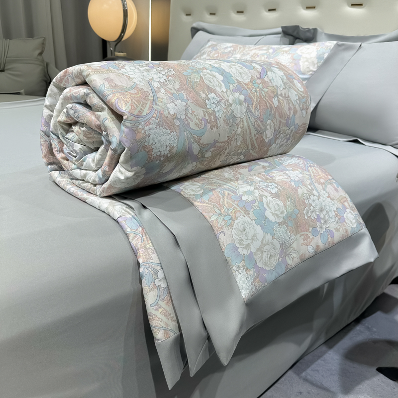 • 91家纺网 家纺一手货源 找家纺 悦织湾家纺 2025新款A类水洗冰丝夏被四件套凉感冰丝印花夏被 夏被-娇之恋