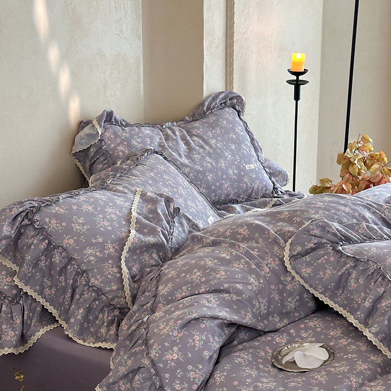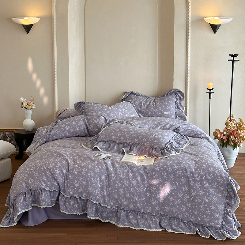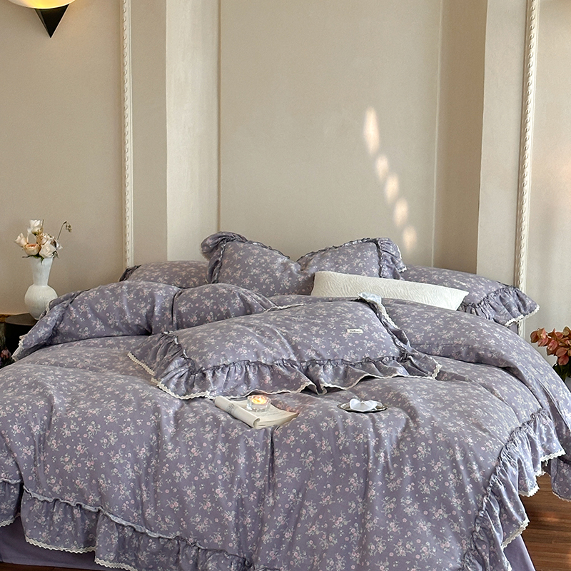 (总)多乐娜 2025新款轻法式精梳纯棉长绒棉工艺款四件套水洗棉韩版轻奢风-极光暮紫【控价:328/348元起】,极光暮紫