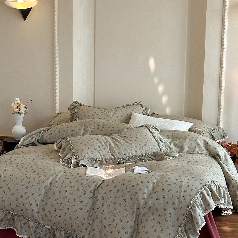 (总)多乐娜 2025新款轻法式纯棉双层纱韩版印花花边四件套工艺款ykk拉链配收纳包
