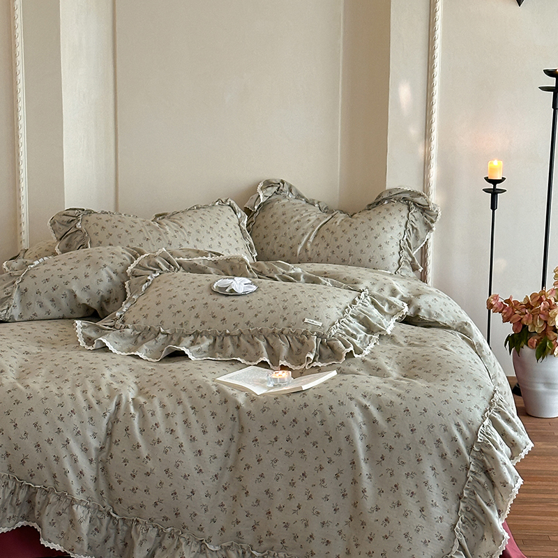 商品名称:(总)多乐娜 2025新款轻法式纯棉双层纱韩版印花花边四件套工艺款ykk拉链配收纳包