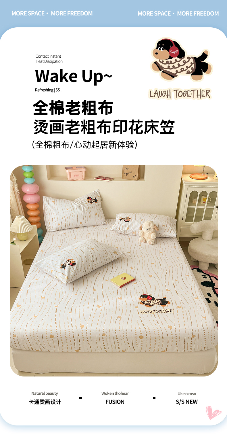 买家秀爆款不断货A类母婴级床笠罩全棉床单防滑全包床垫保护罩全棉老粗布床单100纯棉老粗布床笠罩三件套 超乐汪-卡