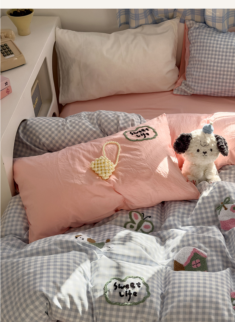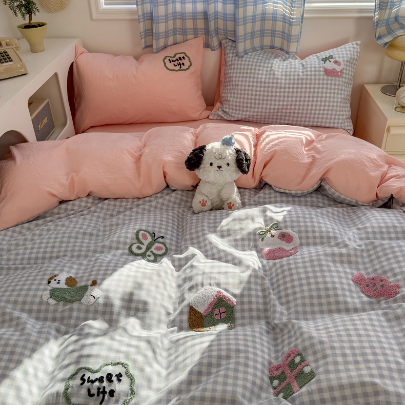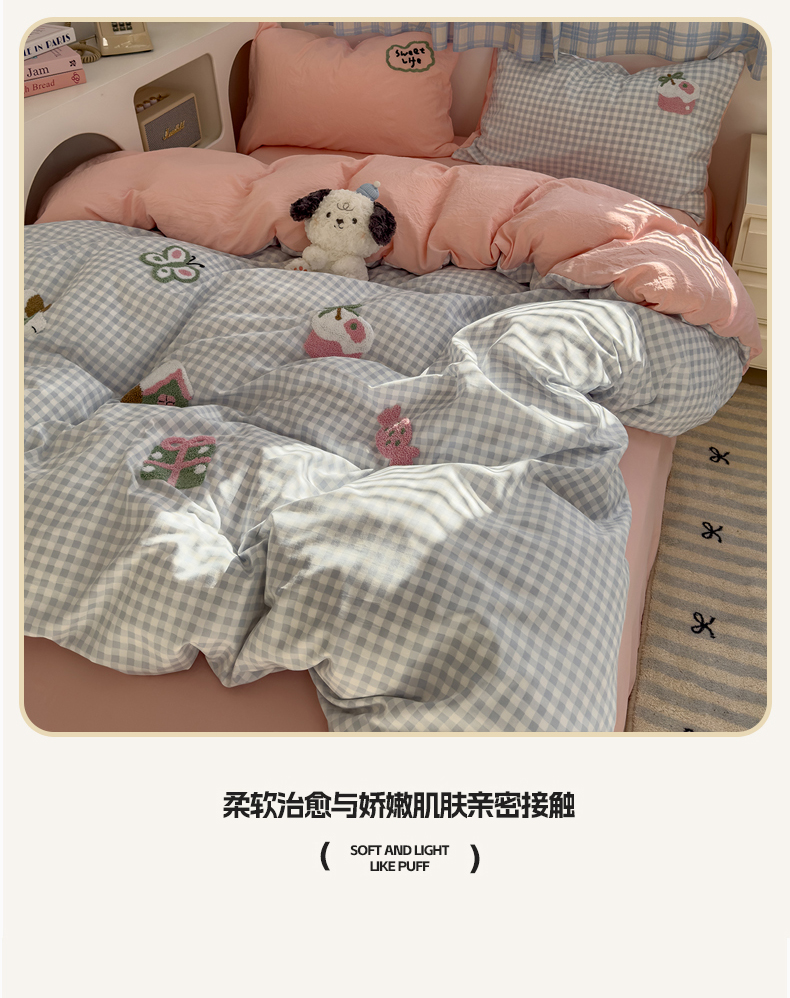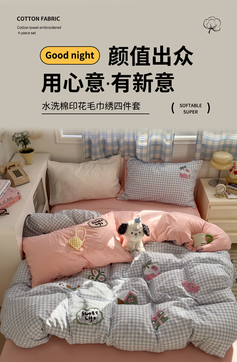 当前位置: 91家纺网 > 商品网购 > 床品套件 > 四件套 > 水洗棉四件套 > 优兰朵 2025新款亲肤卡通水洗棉毛巾绣学生床品四件套 甜梦俱乐部蓝