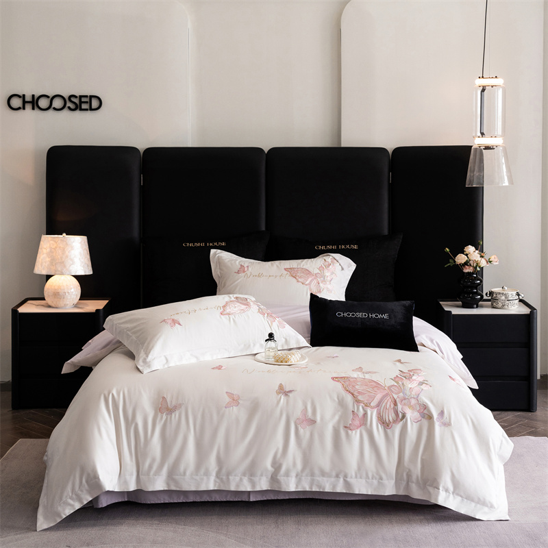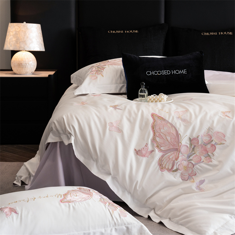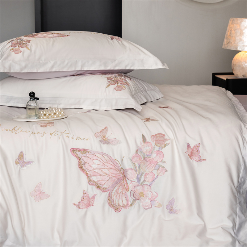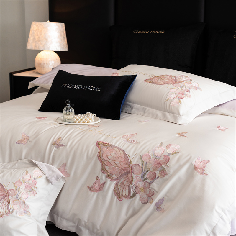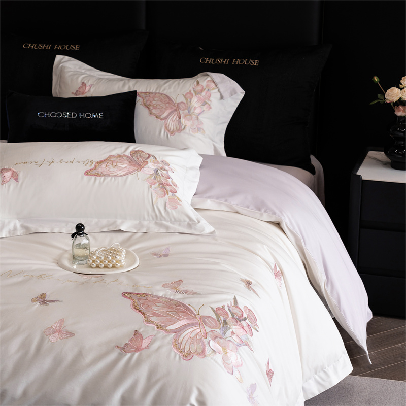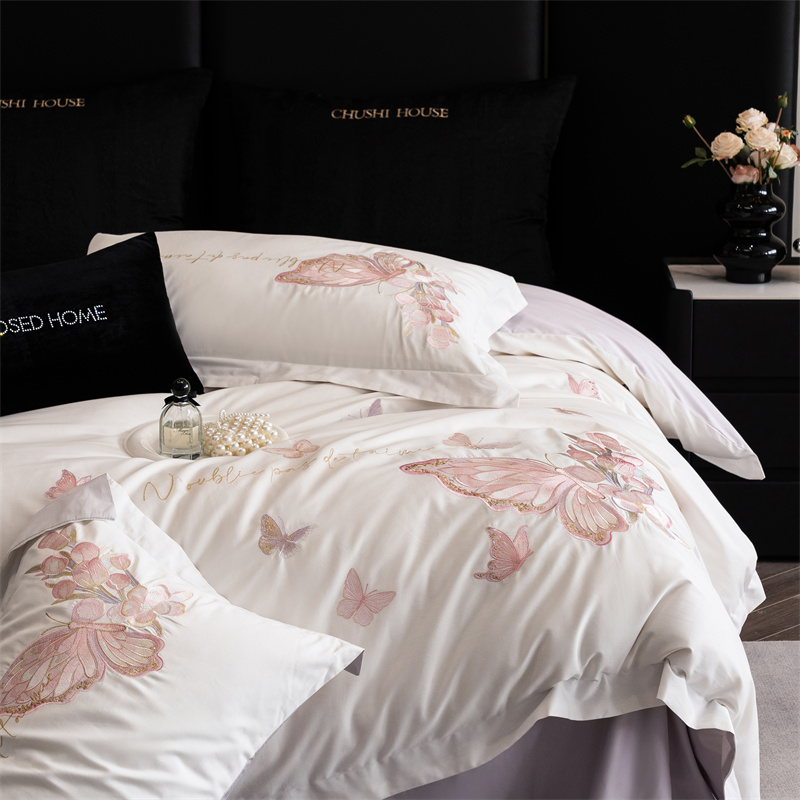 商品名称:(总)初拾 2025新款100s澳棉刺绣四件套-蝶彩霓虹