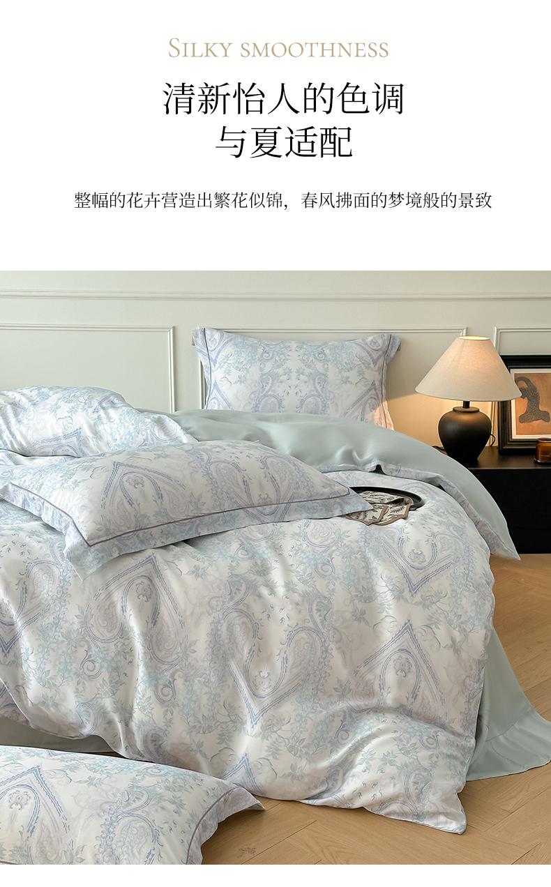 (总)启航家居 2025春夏新款莱赛尔天丝数码印花四件套,半纸叶灰,池禾韵兰,花园派对沙色,梦境之翼兰,梦境之翼绿,小雨录粉,烟花间粉,烟花间绿,樱岛春漫粉,云栖畔灰兰,栀花语粉,紫陌兰,紫陌紫