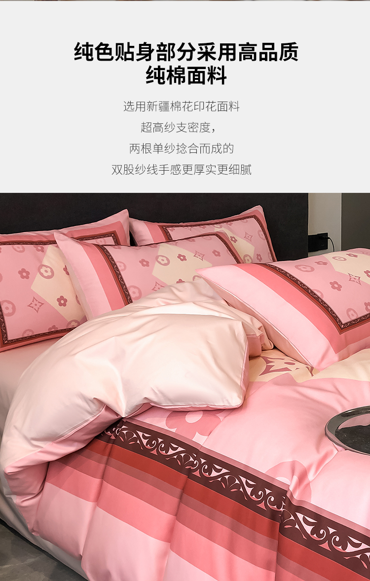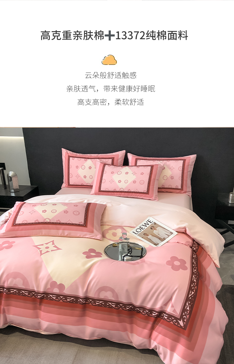 当前位置: 91家纺网 > 商品网购 > 床品套件 > 四件套 > 全棉普通四件套 > (买家秀 爆款不断货)新款高克重亲肤棉+13372全棉纯棉四件套全棉纯棉三件套轻奢风四件套直播 轻奢粉色老花