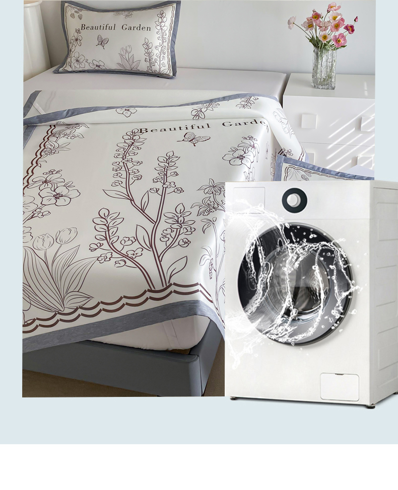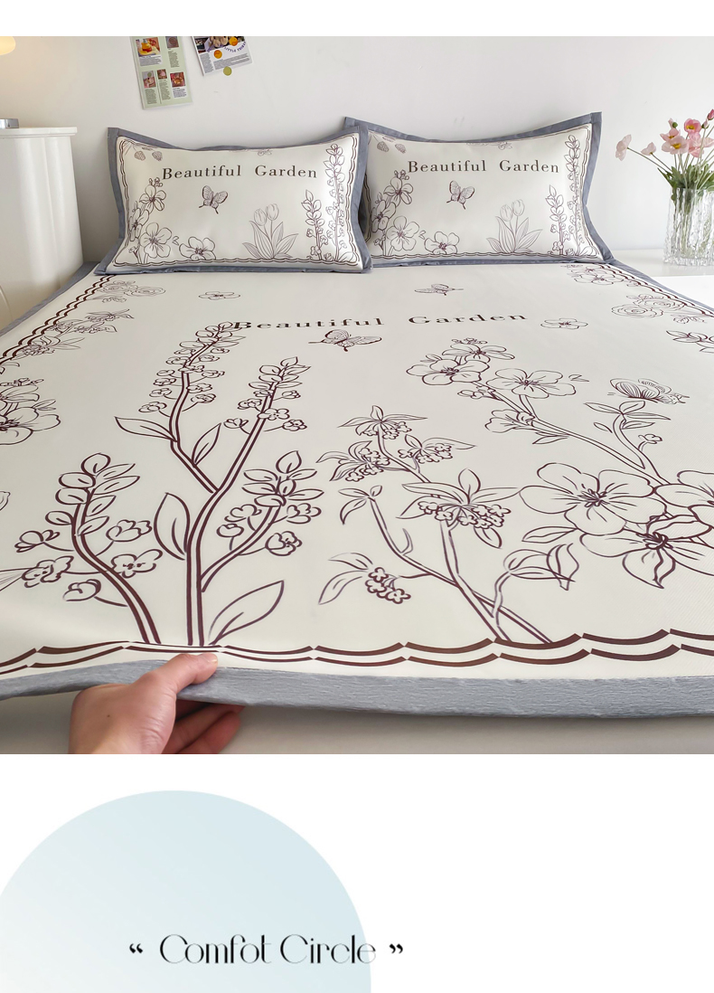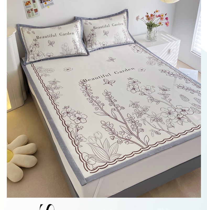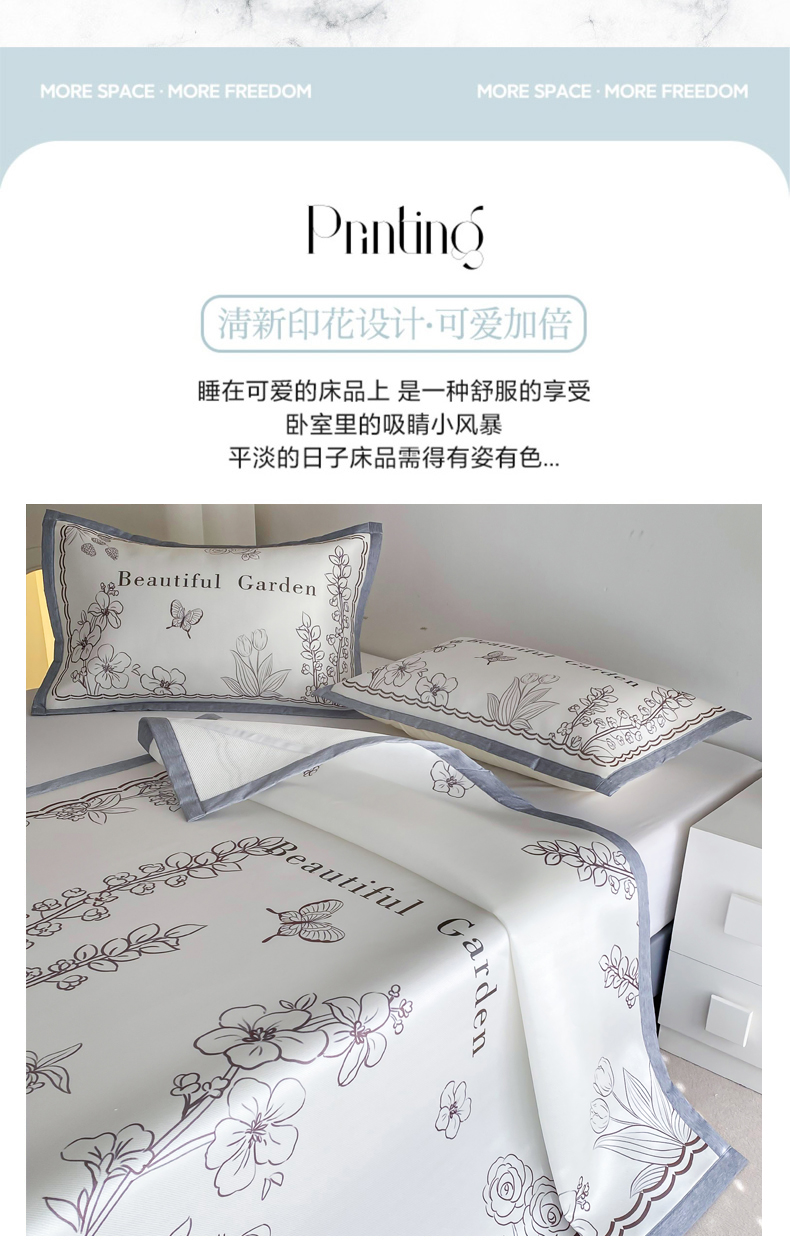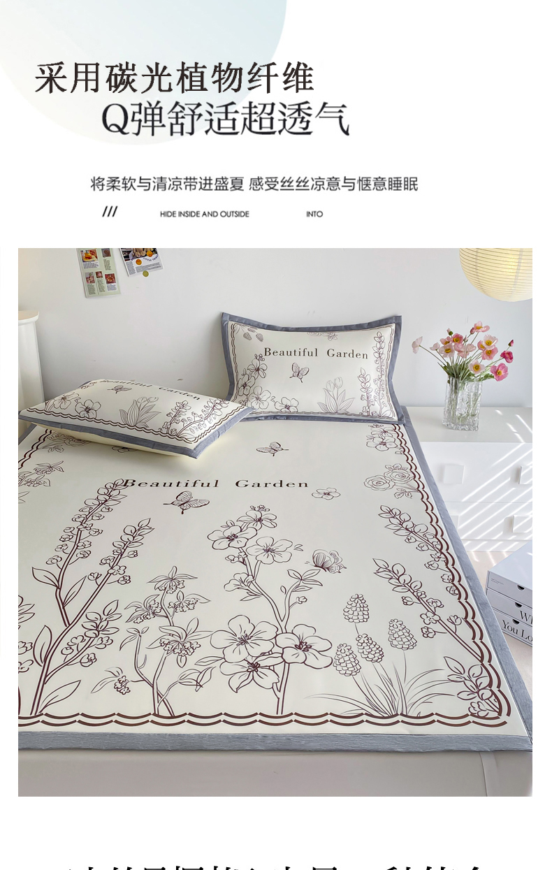 商品名称:邵依 2025新款数码印花烫光冰丝席凉席子藤席 花季相印