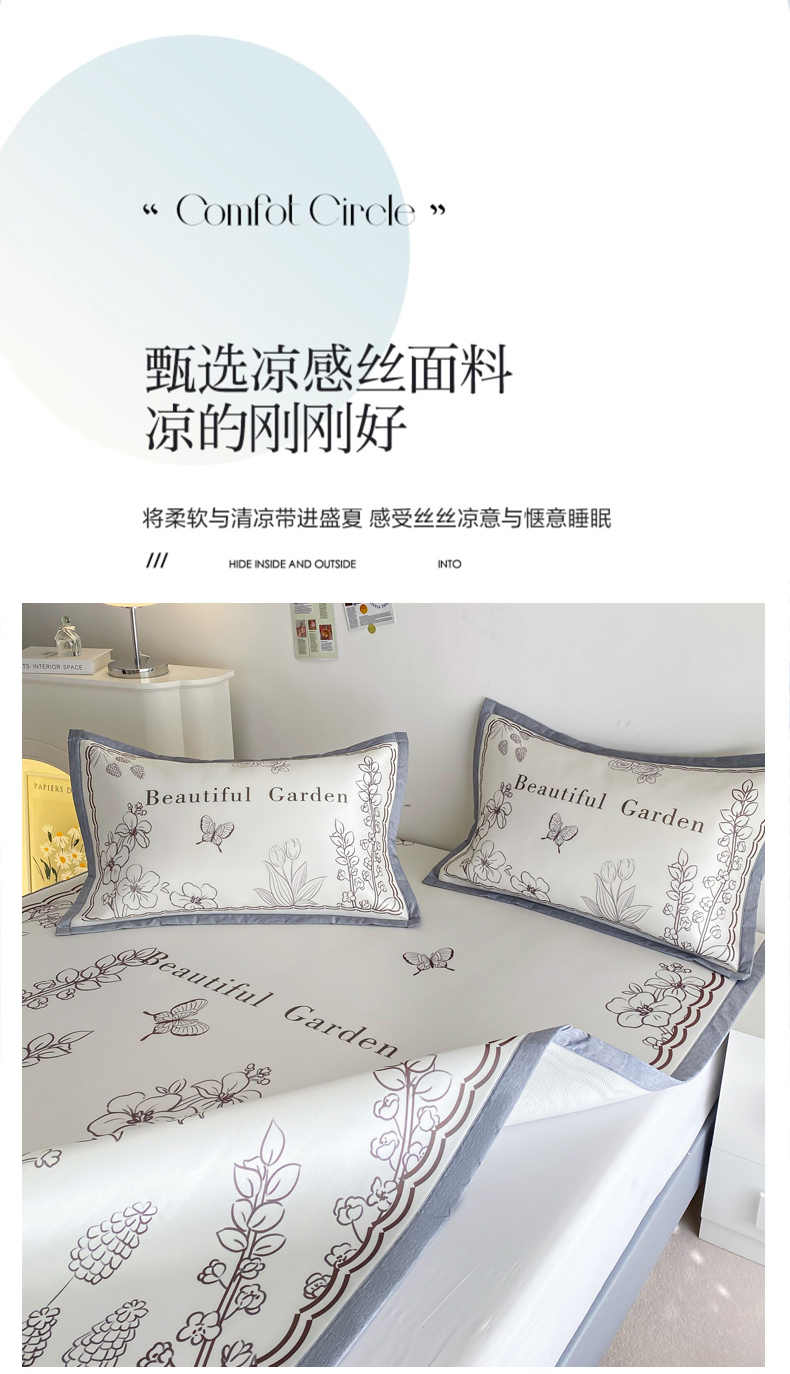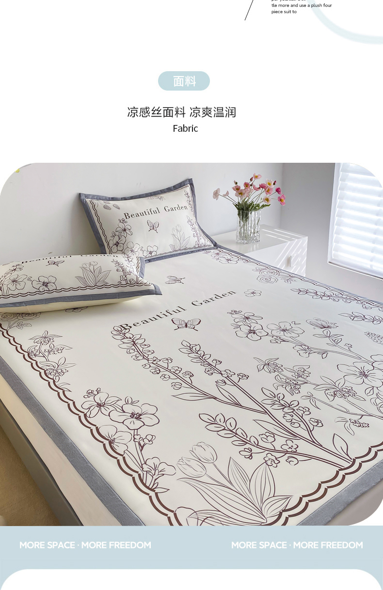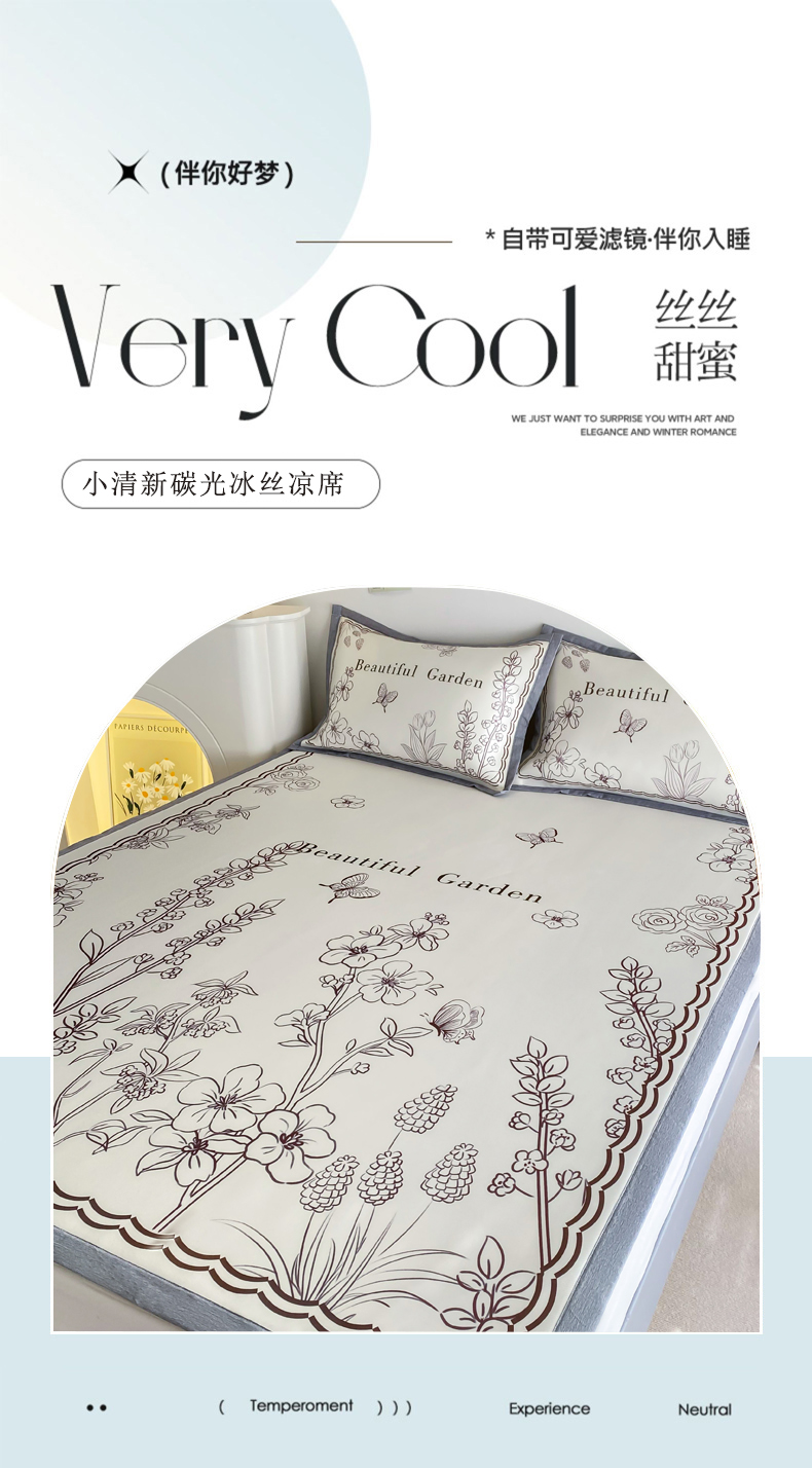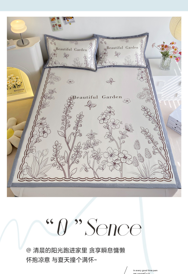 商品名称:邵依 2025新款数码印花烫光冰丝席凉席子藤席 花季相印