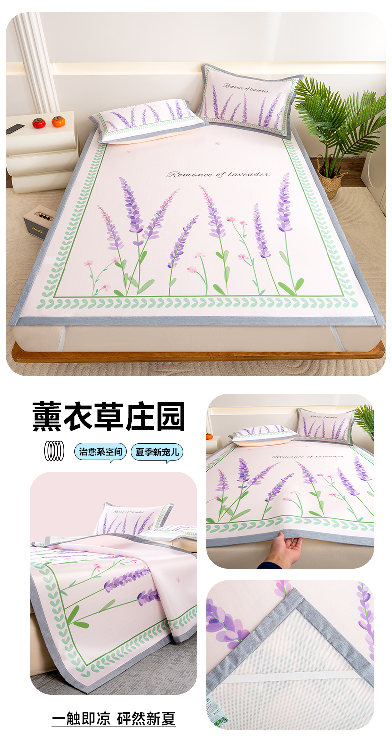 商品名称:邵依家纺 2025新款数码印花烫光冰丝席凉席子藤席场景二 薰衣草庄园