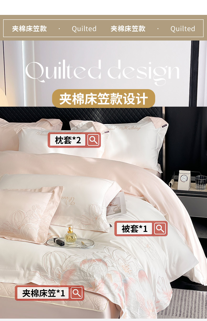 商品名称:(总)2025新款轻奢风A类100支长绒棉四件套全棉纯棉重工刺绣床单床笠夹棉床笠床盖款高端床上用品-星慕