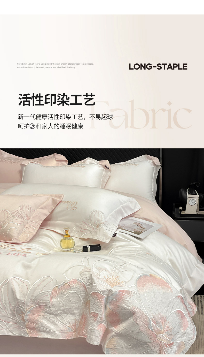 (总) 2025春夏长绒棉四件套纯棉全棉轻奢风床单被套重工刺绣床上用品,芊羽梦-白粉,芊羽梦-茶绿,芊羽梦-黛紫,芊羽梦-慕蓝,芊羽梦-颜粉