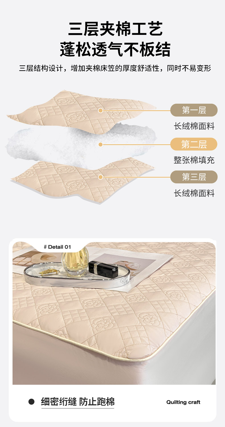 (总)2025A类母婴级长绒棉夹棉床笠三件套纯棉全棉加厚席梦思床罩床套四季款保护罩,茶绿,黛紫,慕蓝,奶玉,颜粉