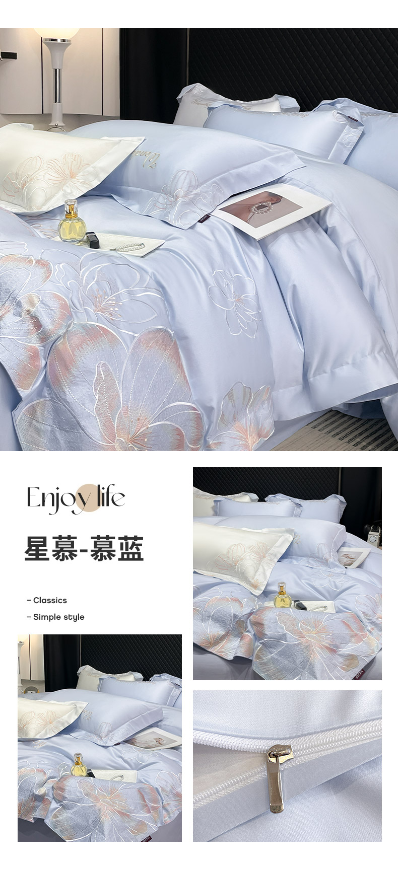(总)2025新款轻奢风A类100支长绒棉四件套全棉纯棉重工刺绣床单床笠夹棉床笠床盖款高端床上用品-星慕,白粉,白蓝,茶绿,黛紫,慕蓝,奶玉,颜粉