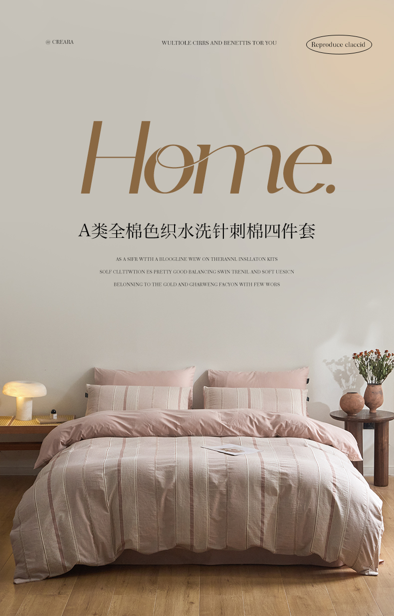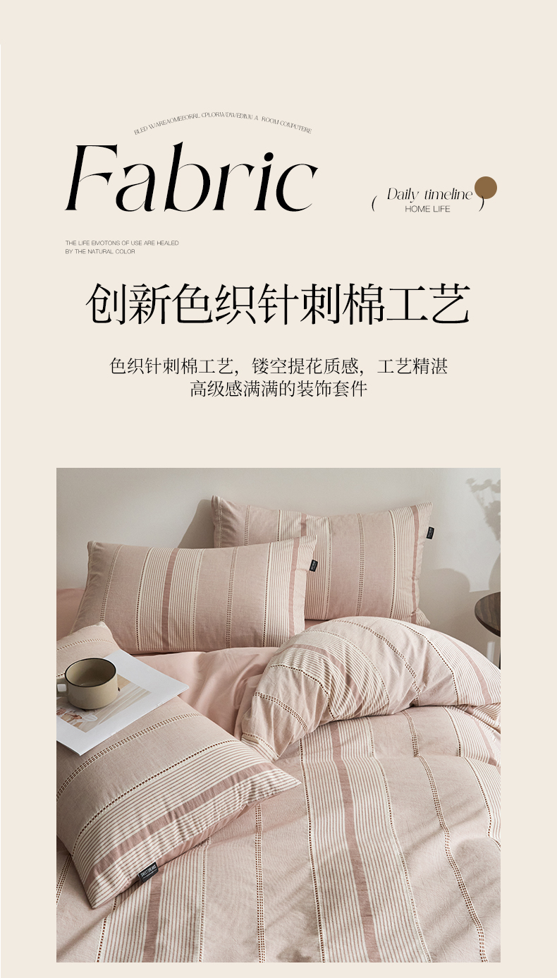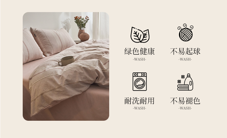 商品名称:格里芬家纺 2025新款全棉色织水洗棉针刺纯棉四件套-瑞拉 瑞拉-豆沙