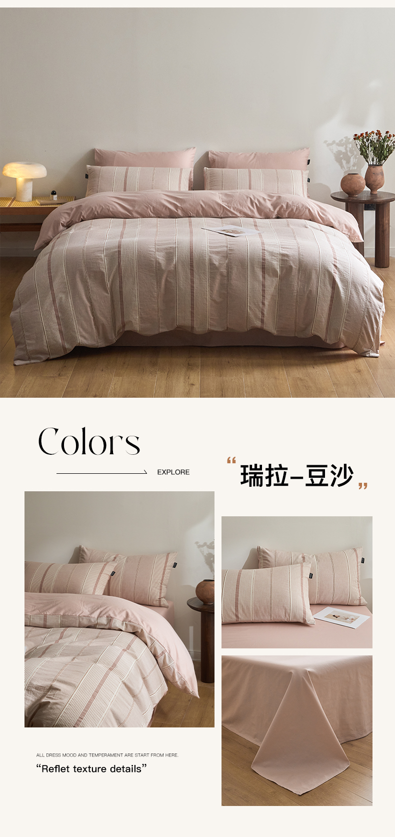 格里芬家纺 2025新款全棉色织水洗棉针刺纯棉四件套-瑞拉 瑞拉-豆沙