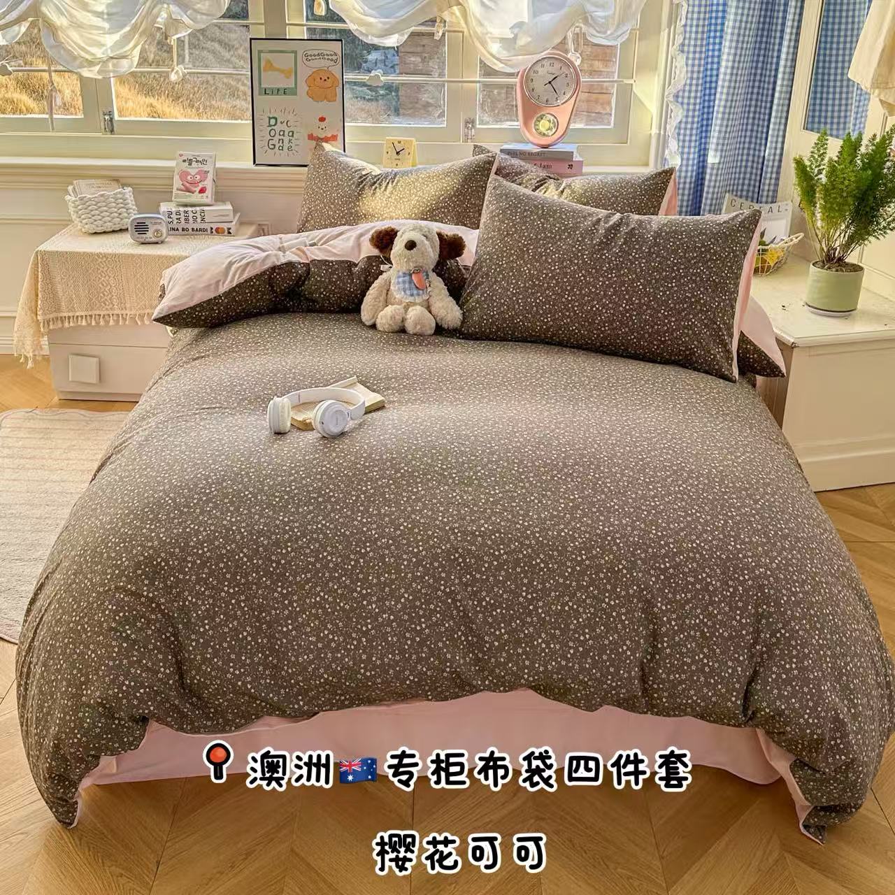 暖伊家居 2026新款澳洲原单仿棉布袋四件套 樱花可可