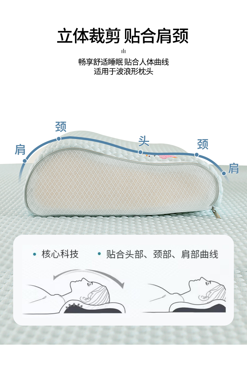 商品名称:(总)小猫派 2025新款夏季冰丝凉感豆豆乳胶枕套清凉儿童记忆枕芯套