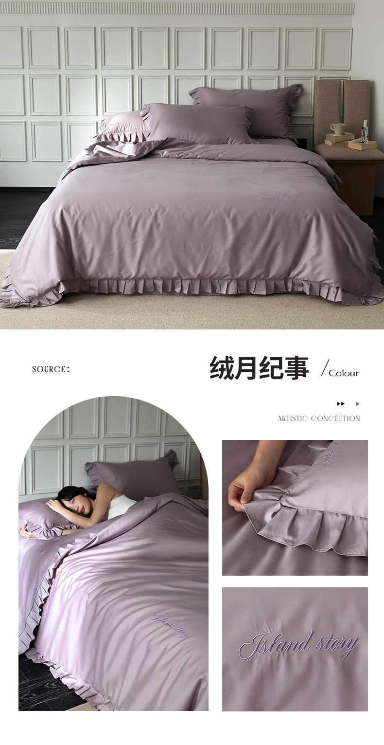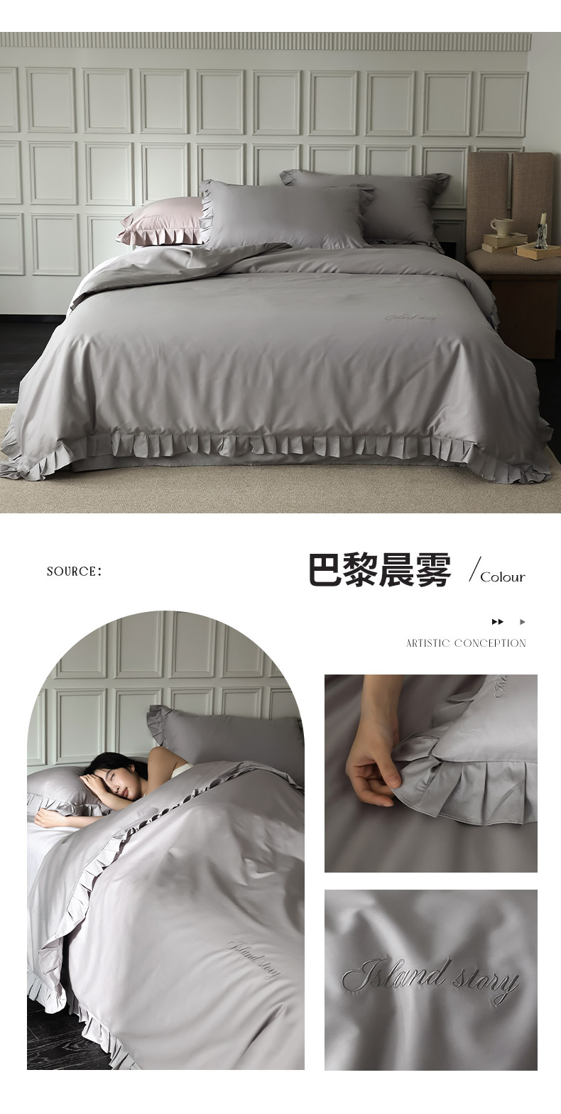 (总)轩和家居 2025新款全棉高支旧感砂洗长绒棉四件套,薄樱粉,淡黄色,暮烟灰,墨染灰,落栗棕,霁兰色,豆沙色,浅云白,青绿色,秋麦色,松石绿,天空蓝,雾海蓝,细雨灰