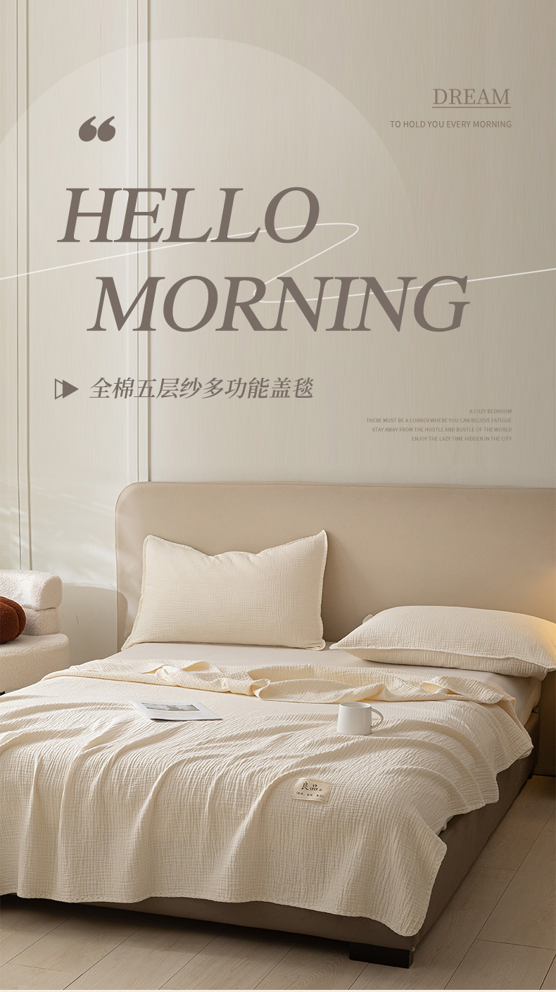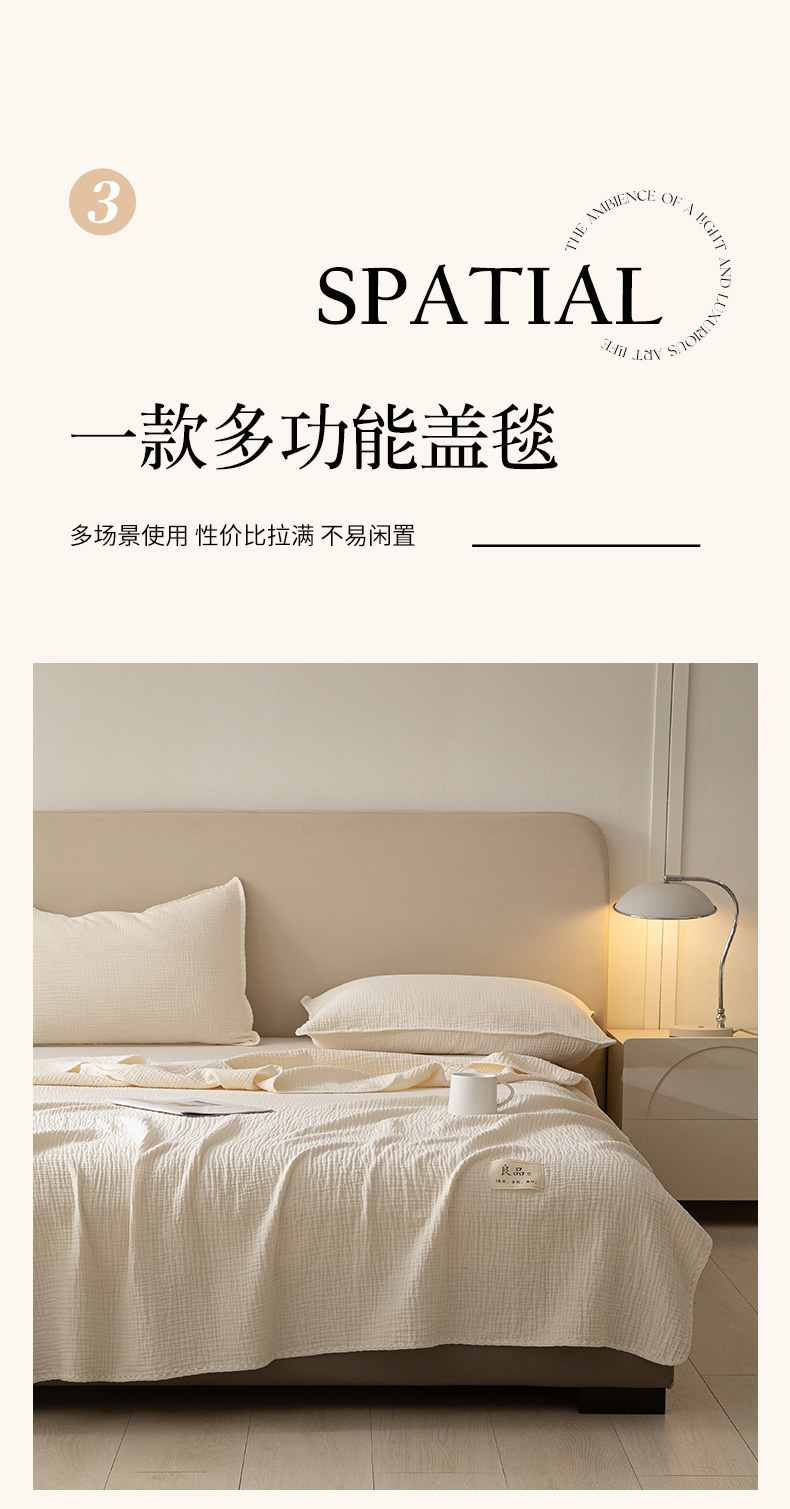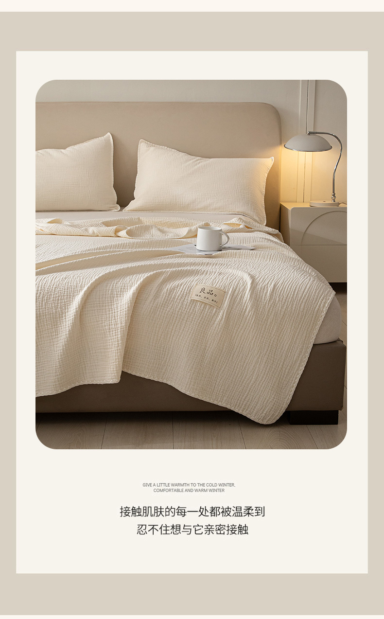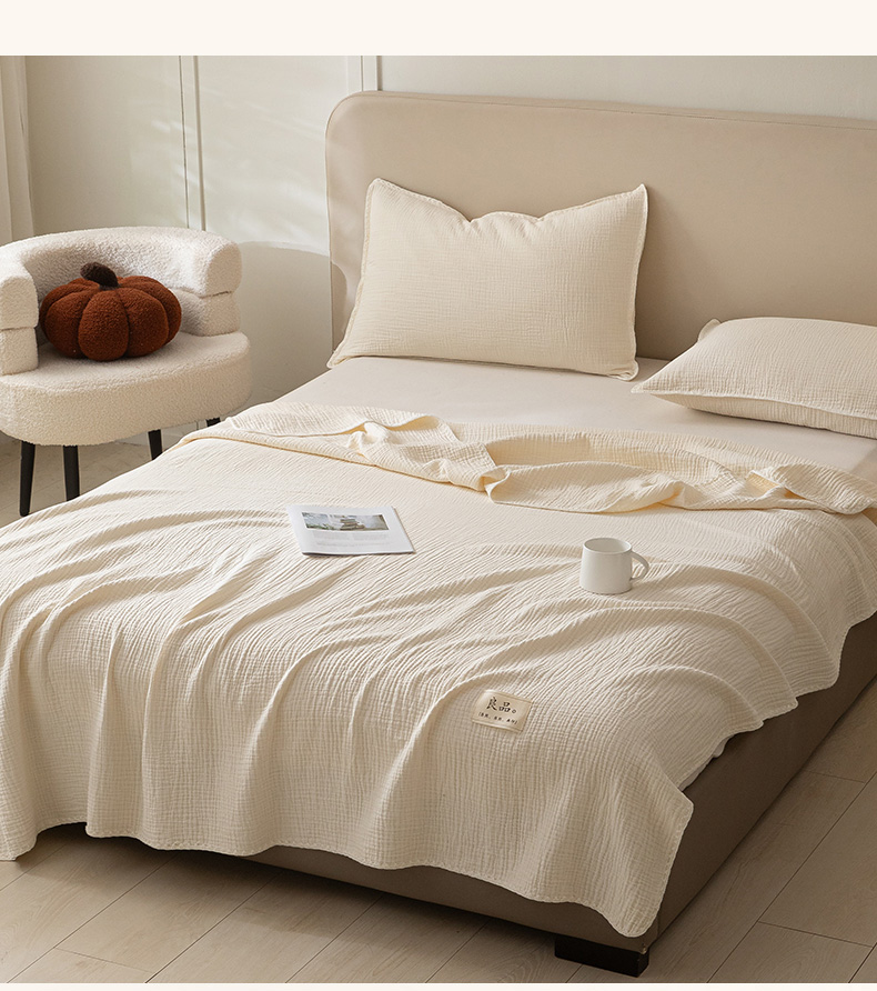 商品名称:博雅 2025新款全棉五层纱多功能盖毯 米白