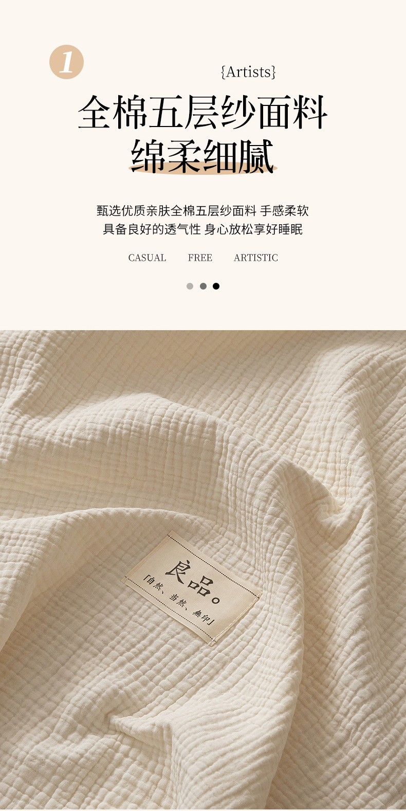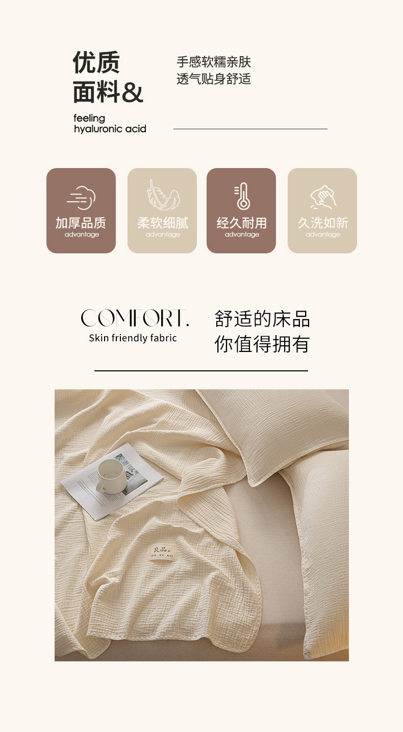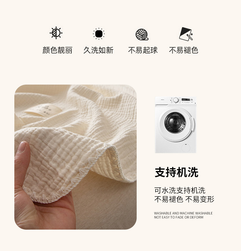 商品名称:博雅 2025新款全棉五层纱多功能盖毯 米白