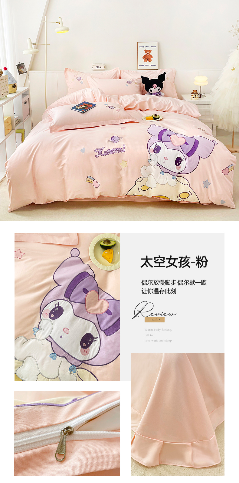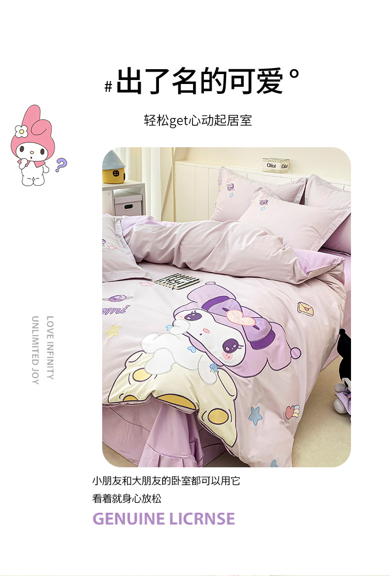 (总)金绣美居 2025新款全棉大版卡通贴布绣春夏新款四件套-太空女孩,太空女孩-紫色,太空女孩-粉色