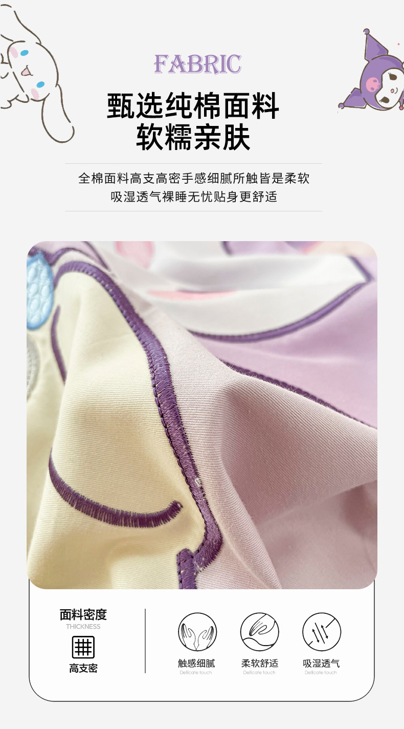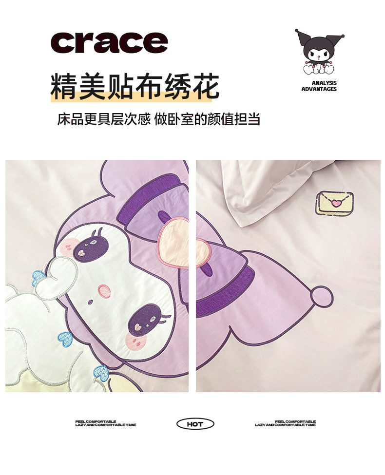 (总)金绣美居 2025春夏新品全棉大版卡通贴布绣四件套--兔兔乐园,兔兔乐园-紫色