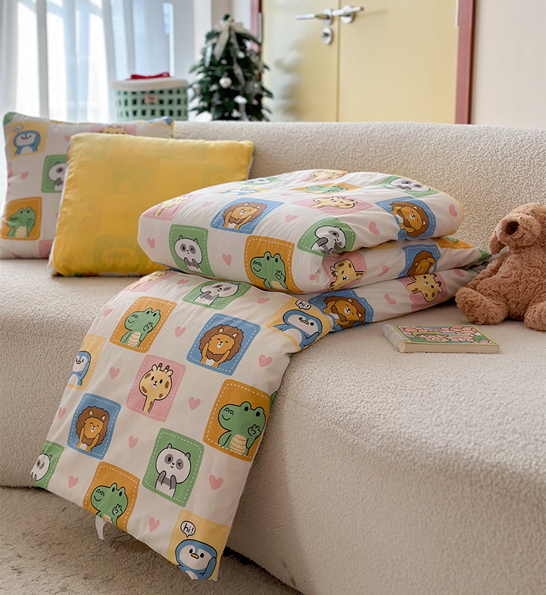 多米家居 2025新款全棉口袋印花抱枕被 一口平安果