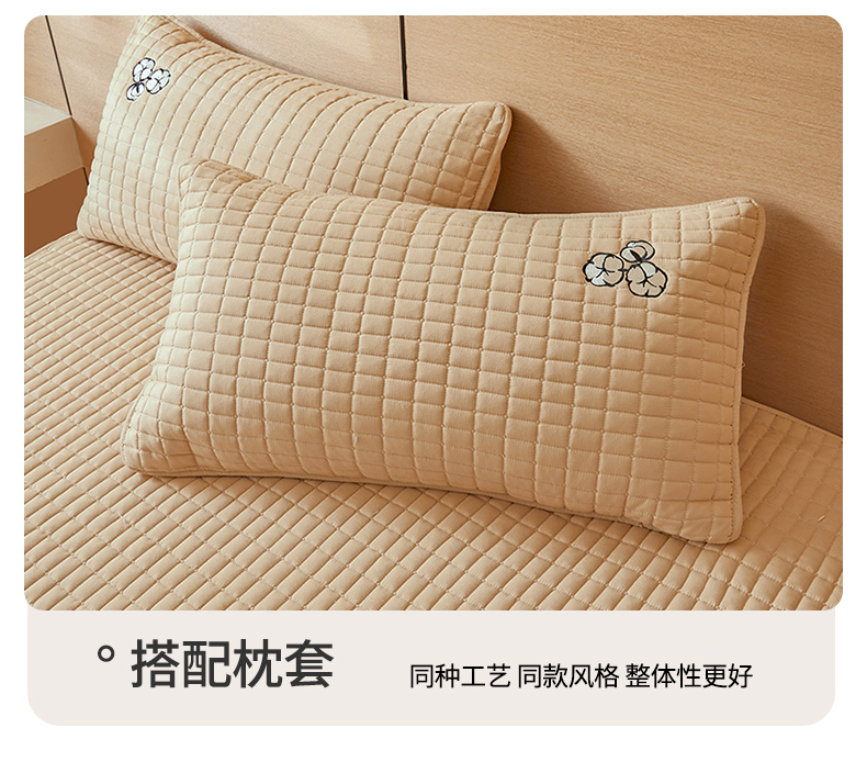 (总)锦眠 2025新款亲肤面包格夹棉床笠,白色,粉色,灰色,卡其,蓝色