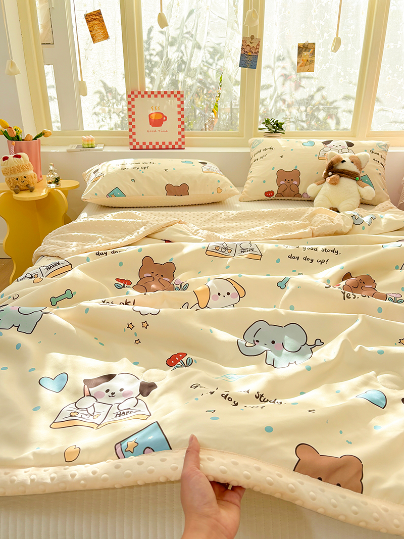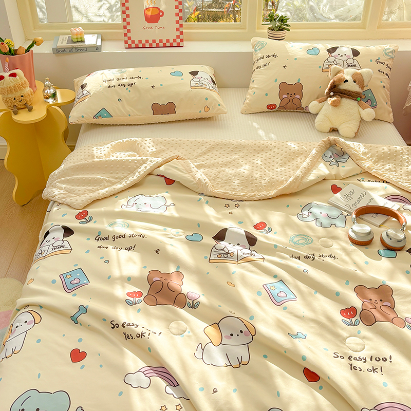 恒畅 2025新款A类水洗棉印花豆豆被抗菌夏被夏凉被空调被 萌宠乐园