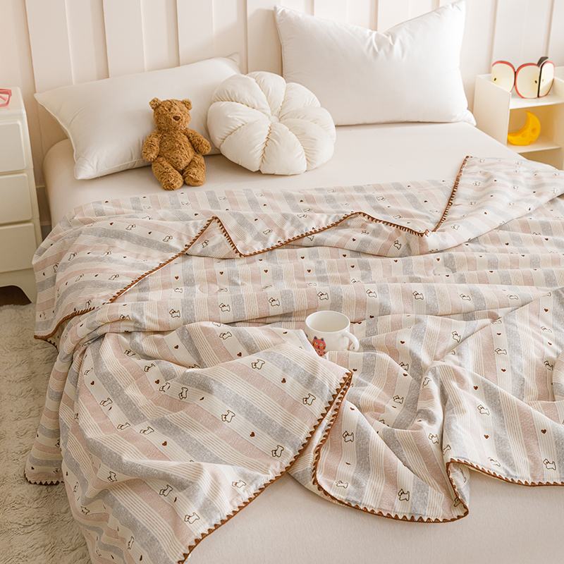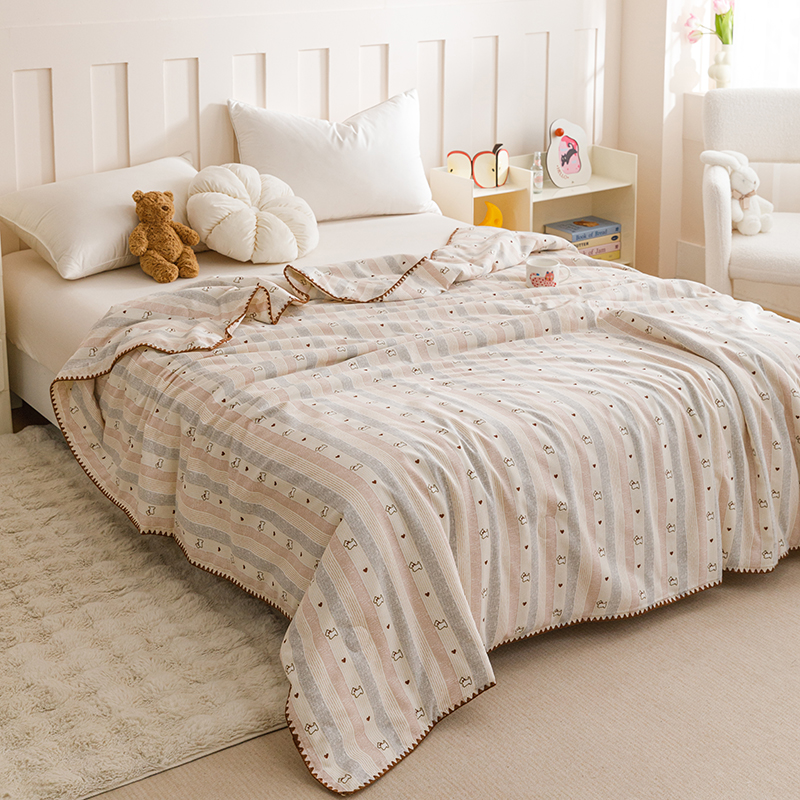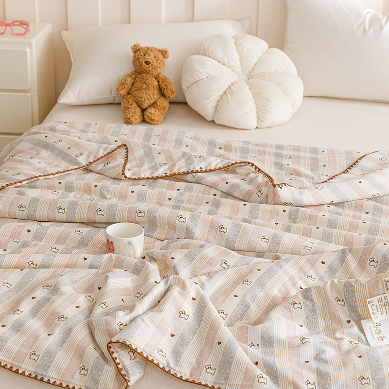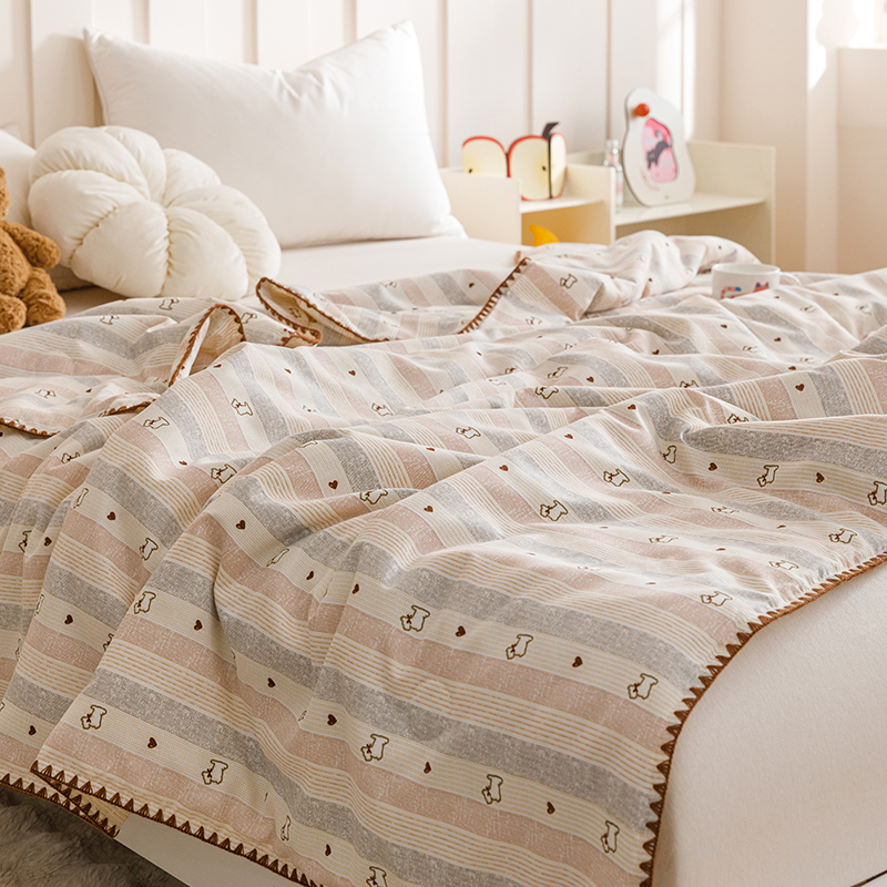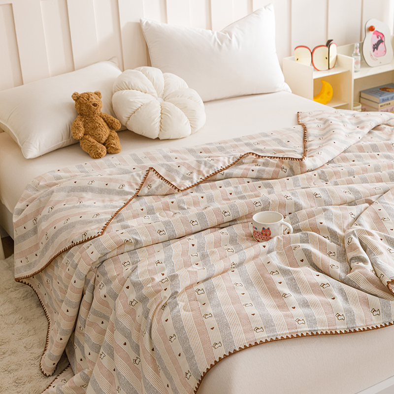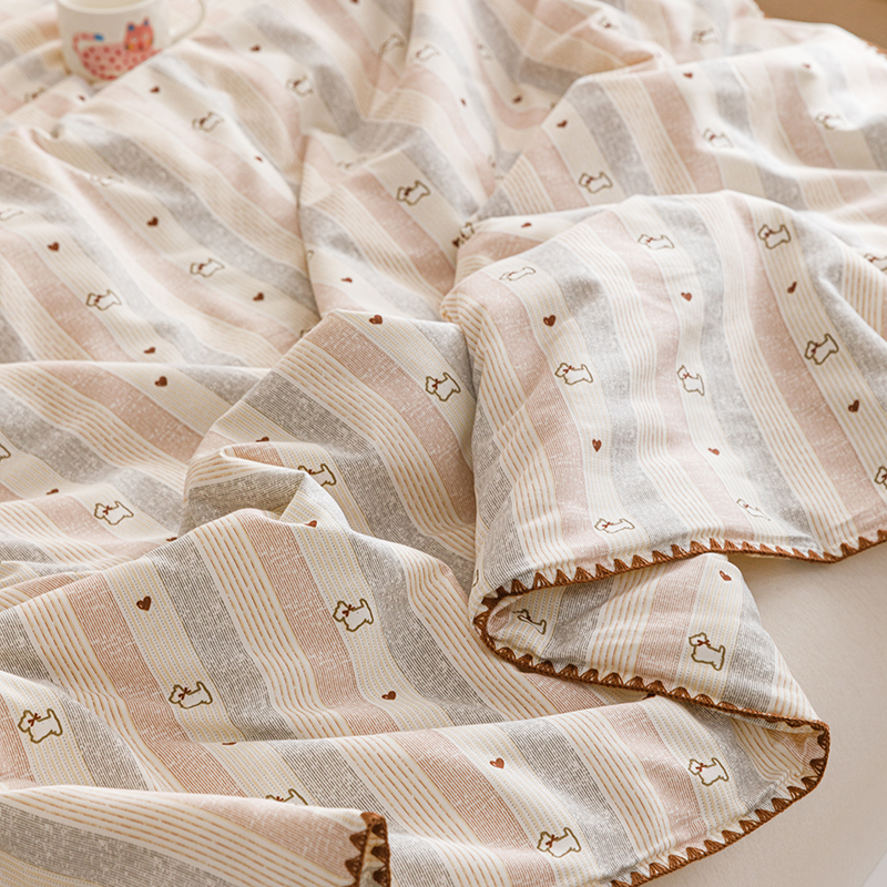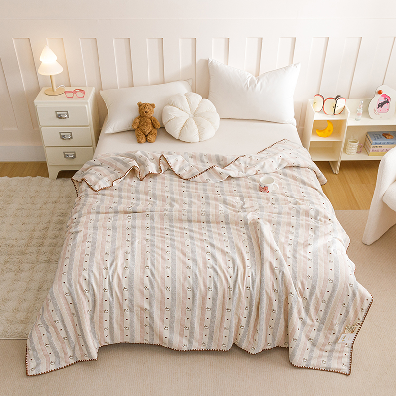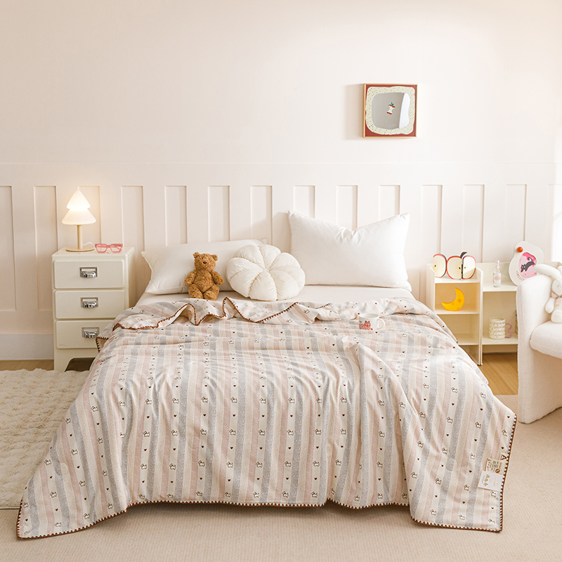 (总)优被业 2025新款全棉双层纱皱皱纱夏被,南瓜熊猫,宠物乐园,小爱心,爱心熊,花语,花馨,蘑菇小兔