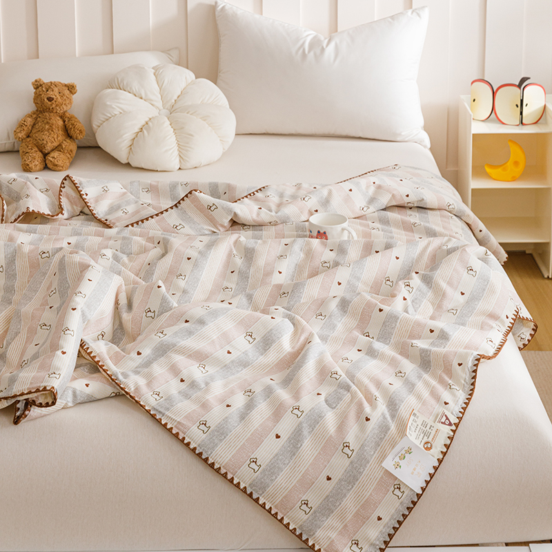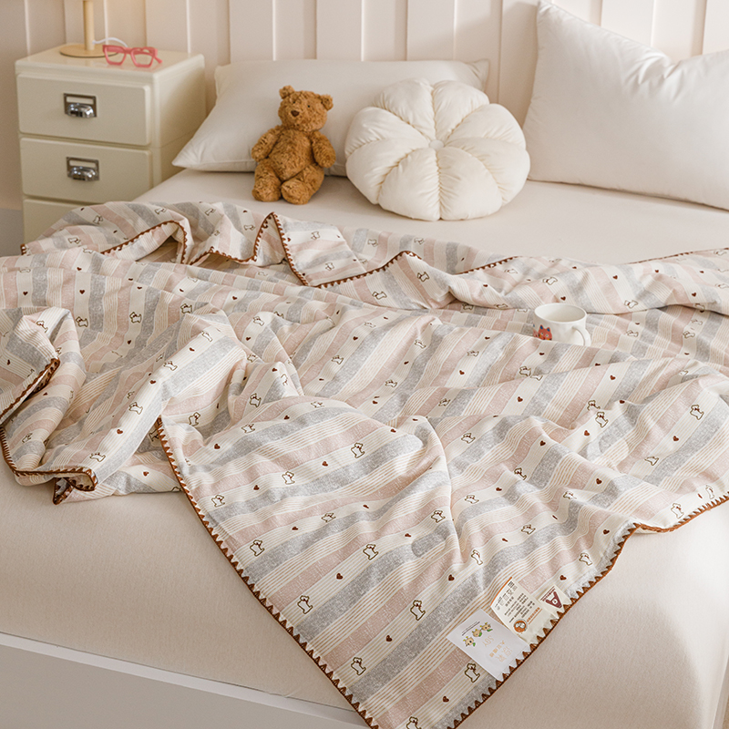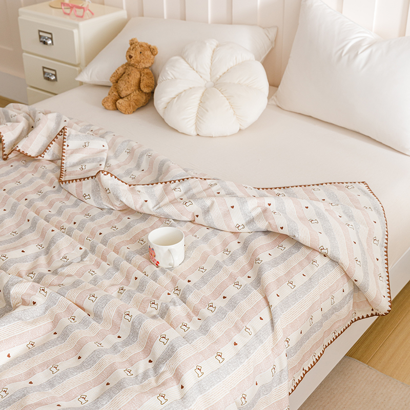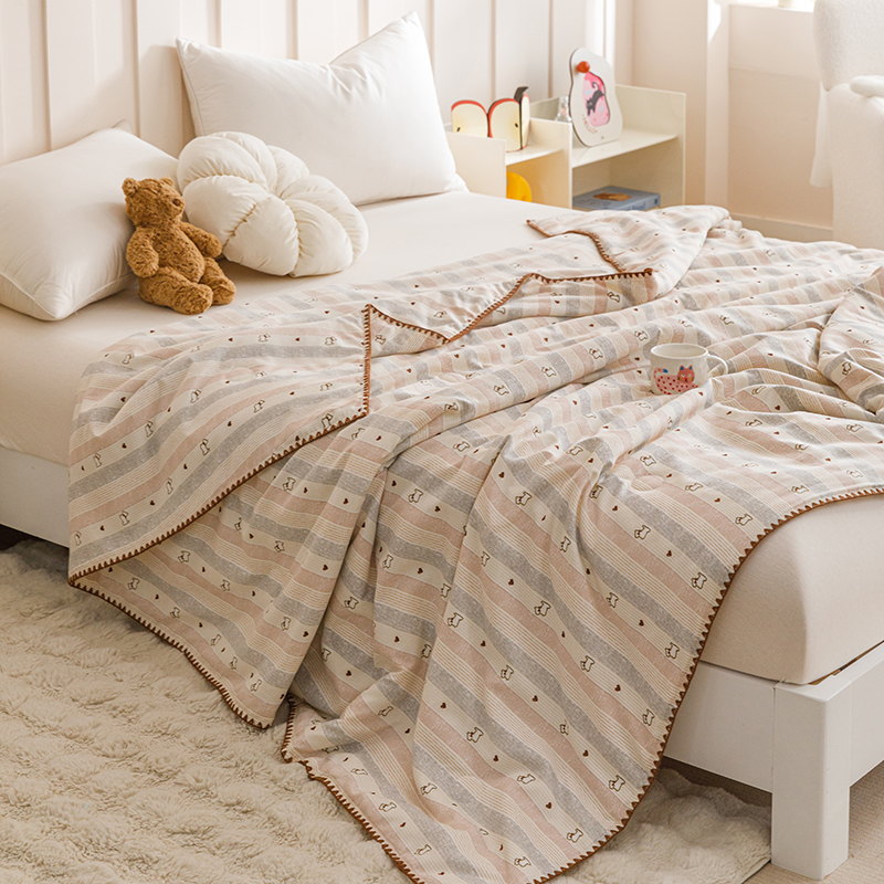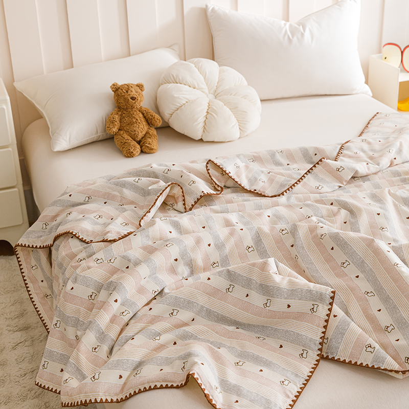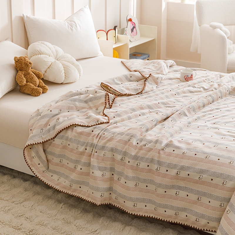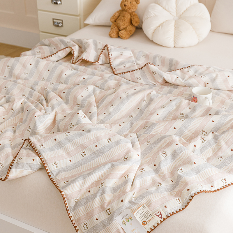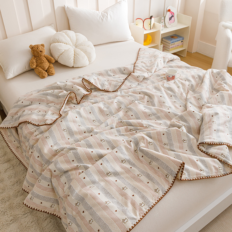 (总)优被业 2025新款全棉双层纱皱皱纱夏被,南瓜熊猫,宠物乐园,小爱心,爱心熊,花语,花馨,蘑菇小兔