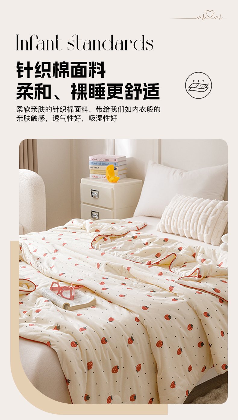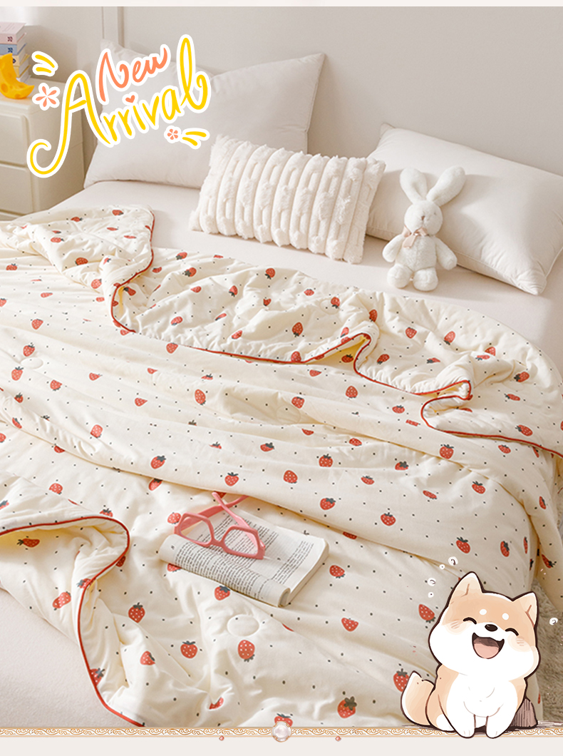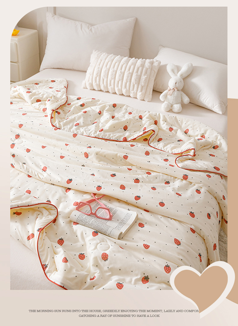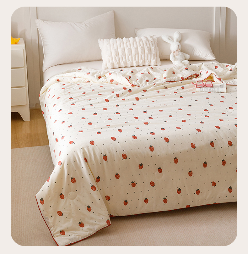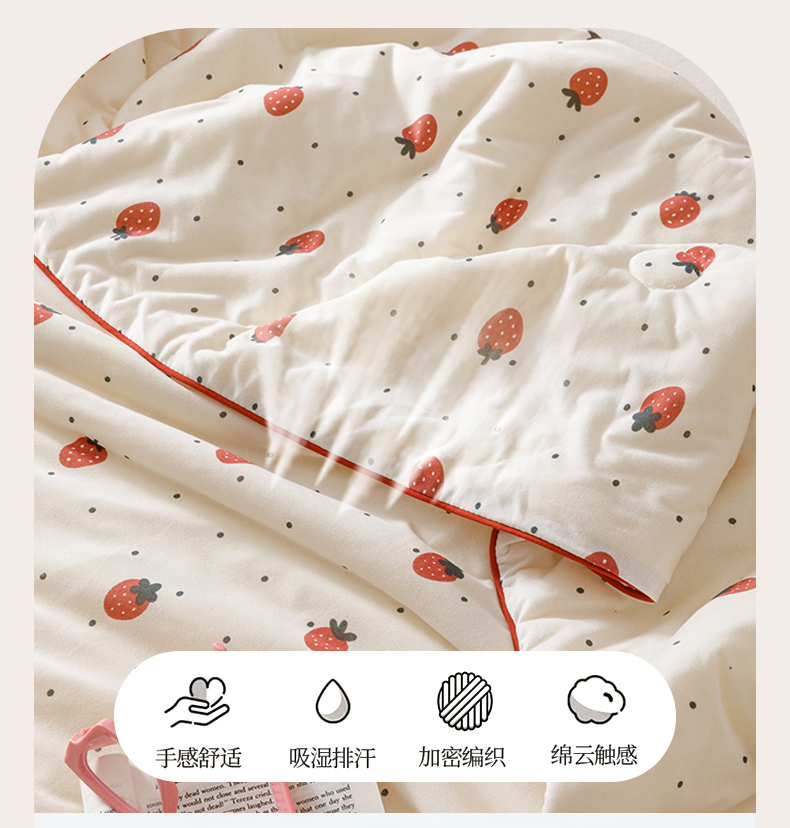 商品名称:优被业 2025新款A类牛奶丝针织棉夏被20%大豆(四周踩棉)软糯夏凉被空调被 草莓